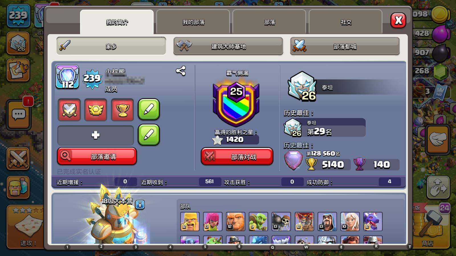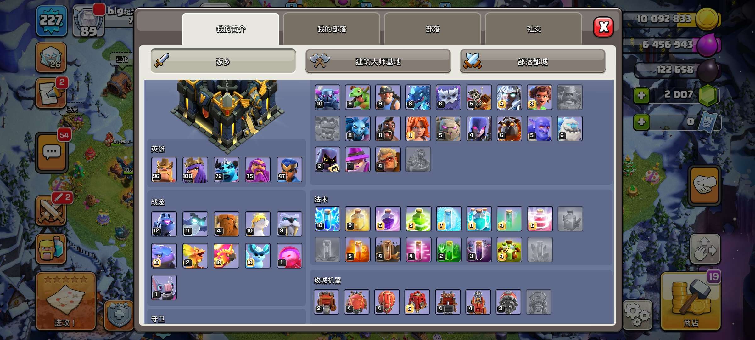 部落冲突国服q区,17本92繁荣值,一手账号