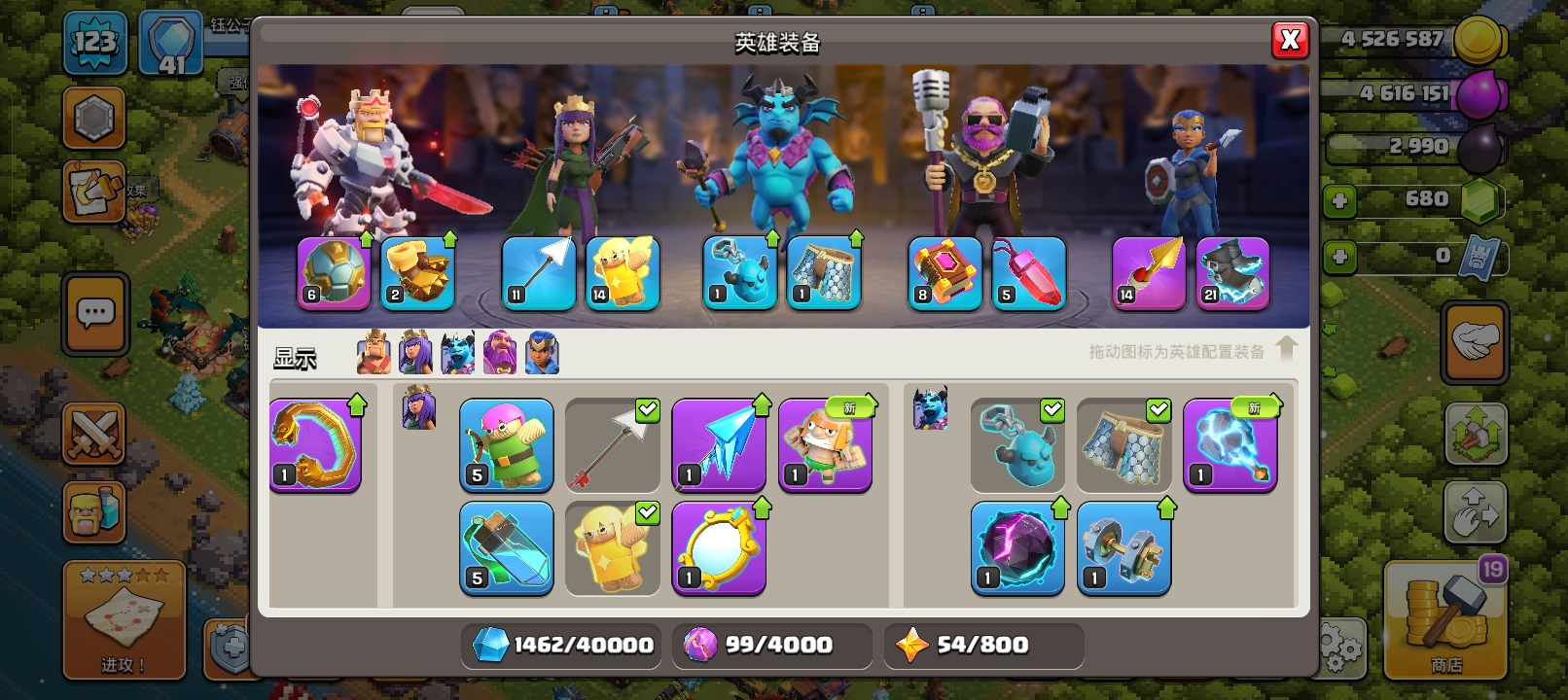 等级157/6农/英雄等级57-78-54-22/魔法蛮王/爆裂小队蛮王/像素蛮王/未来领袖·守护者/角斗士守护者