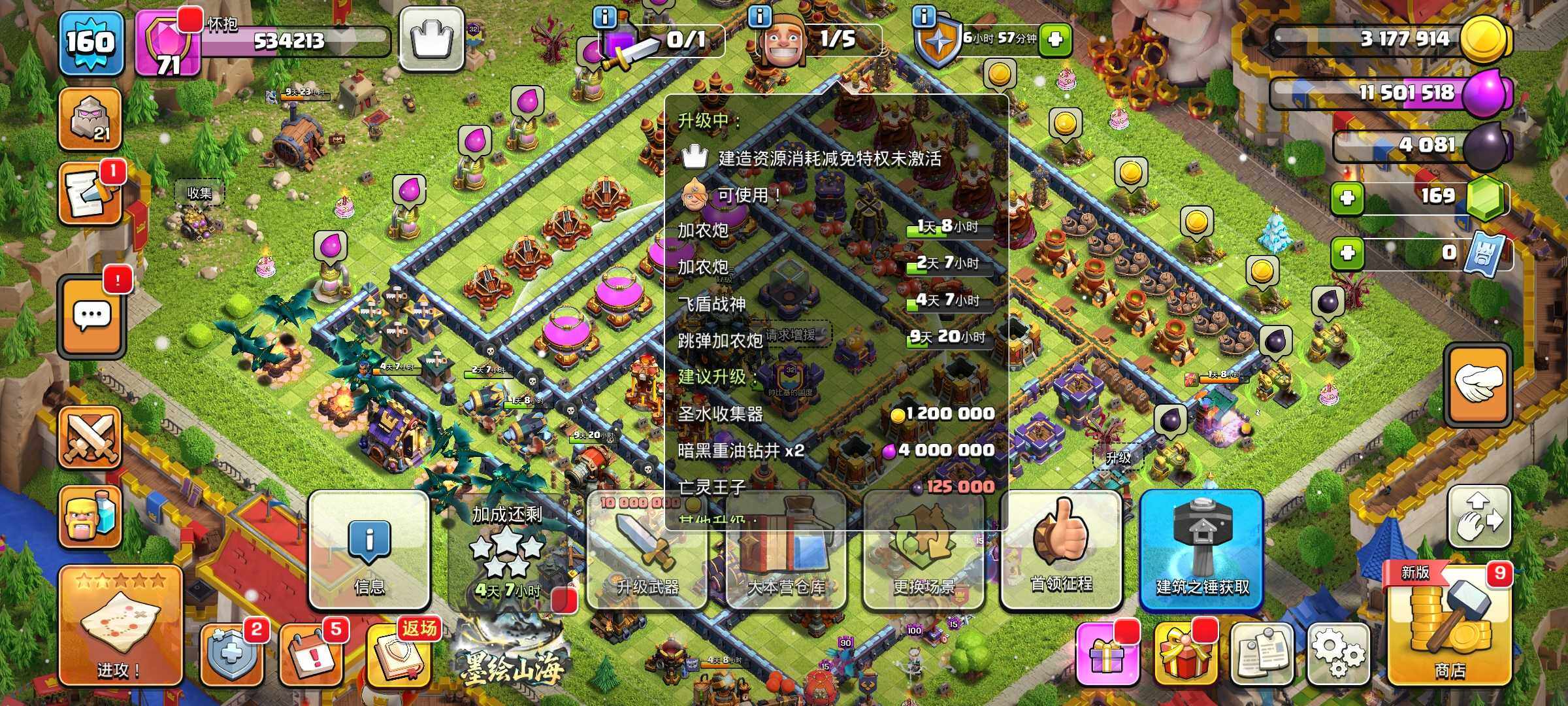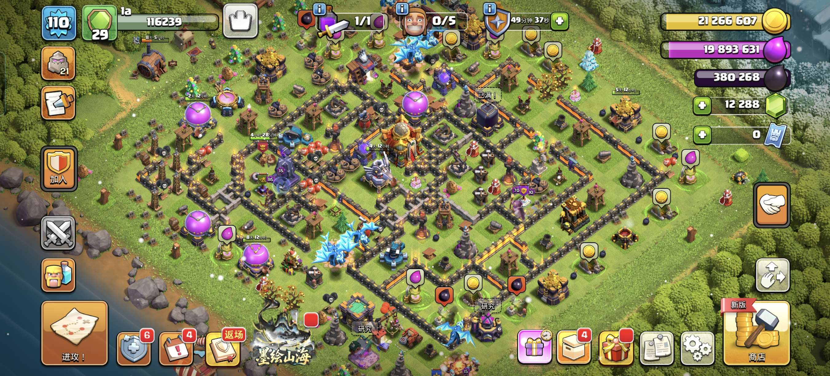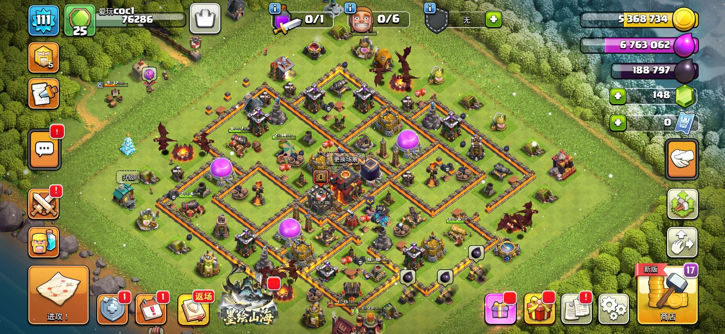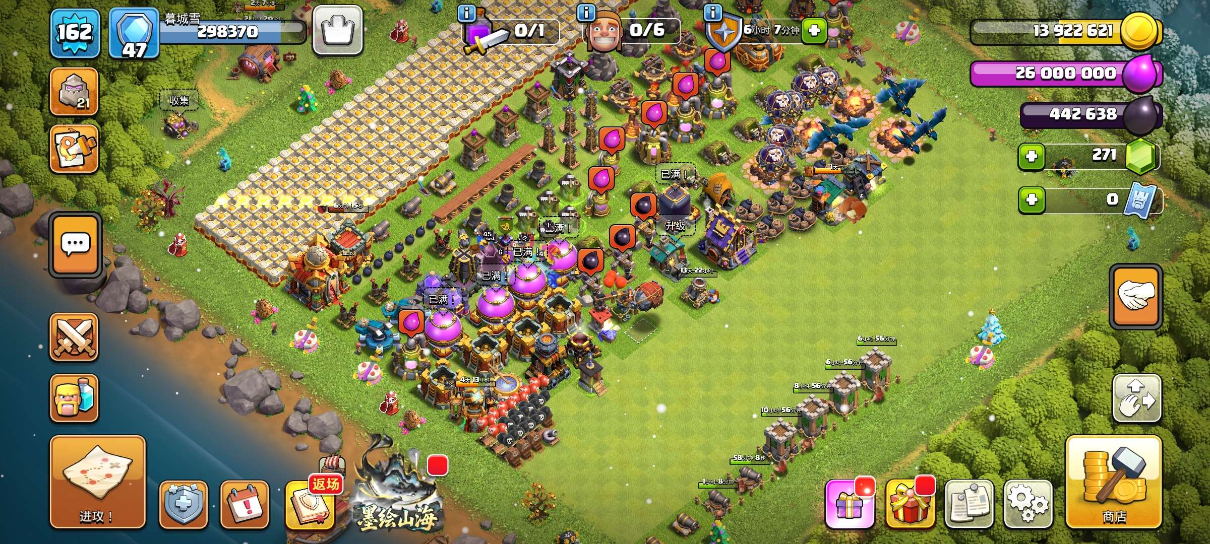 部落冲突国服安卓QQ,16本,宝石10000+,5农