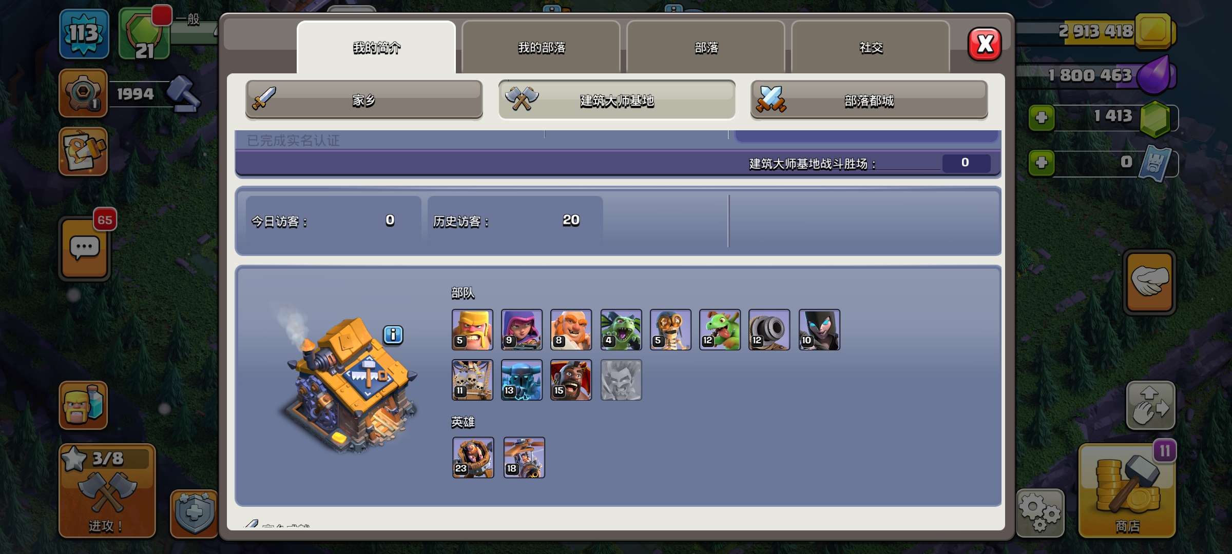 安卓QQ号,17本,6农,建筑大师大本营10级,便宜卖