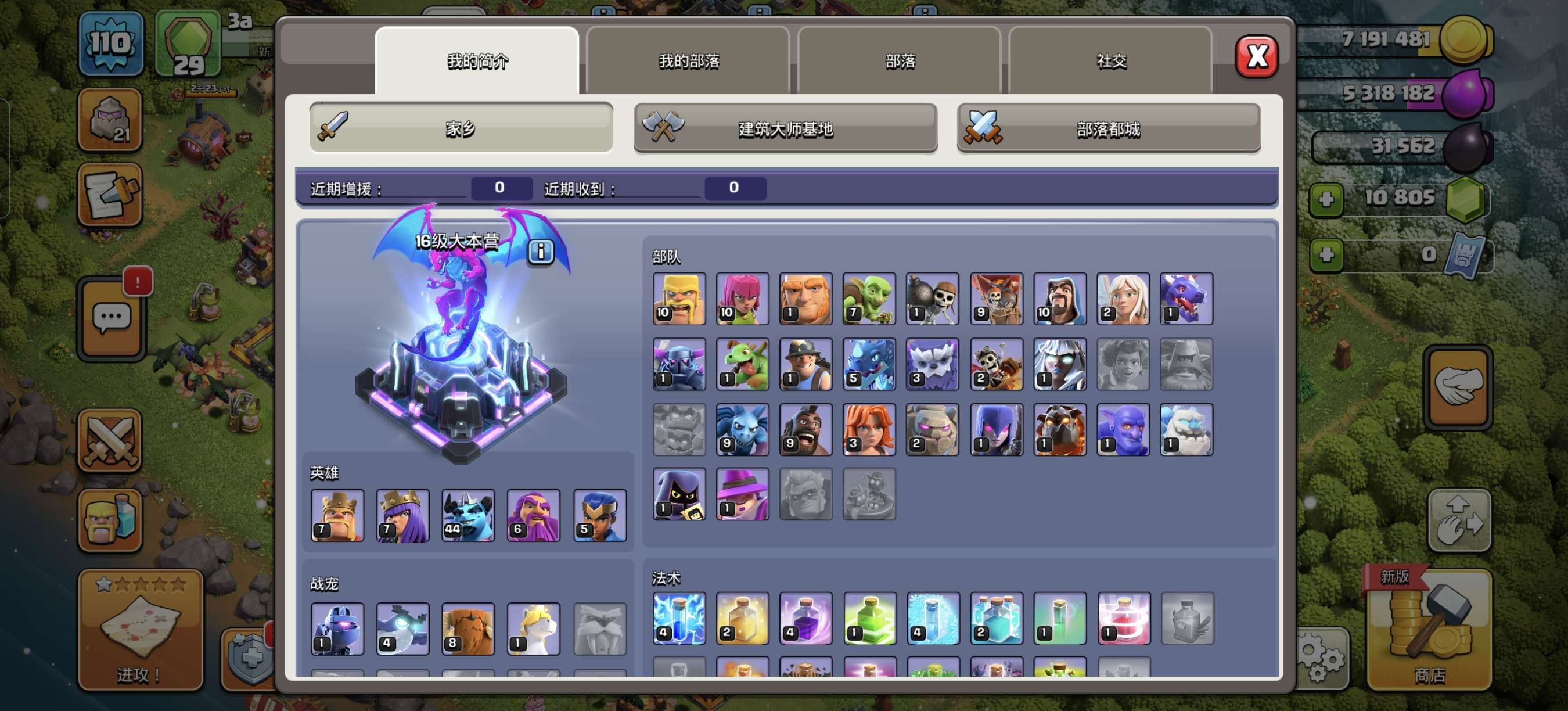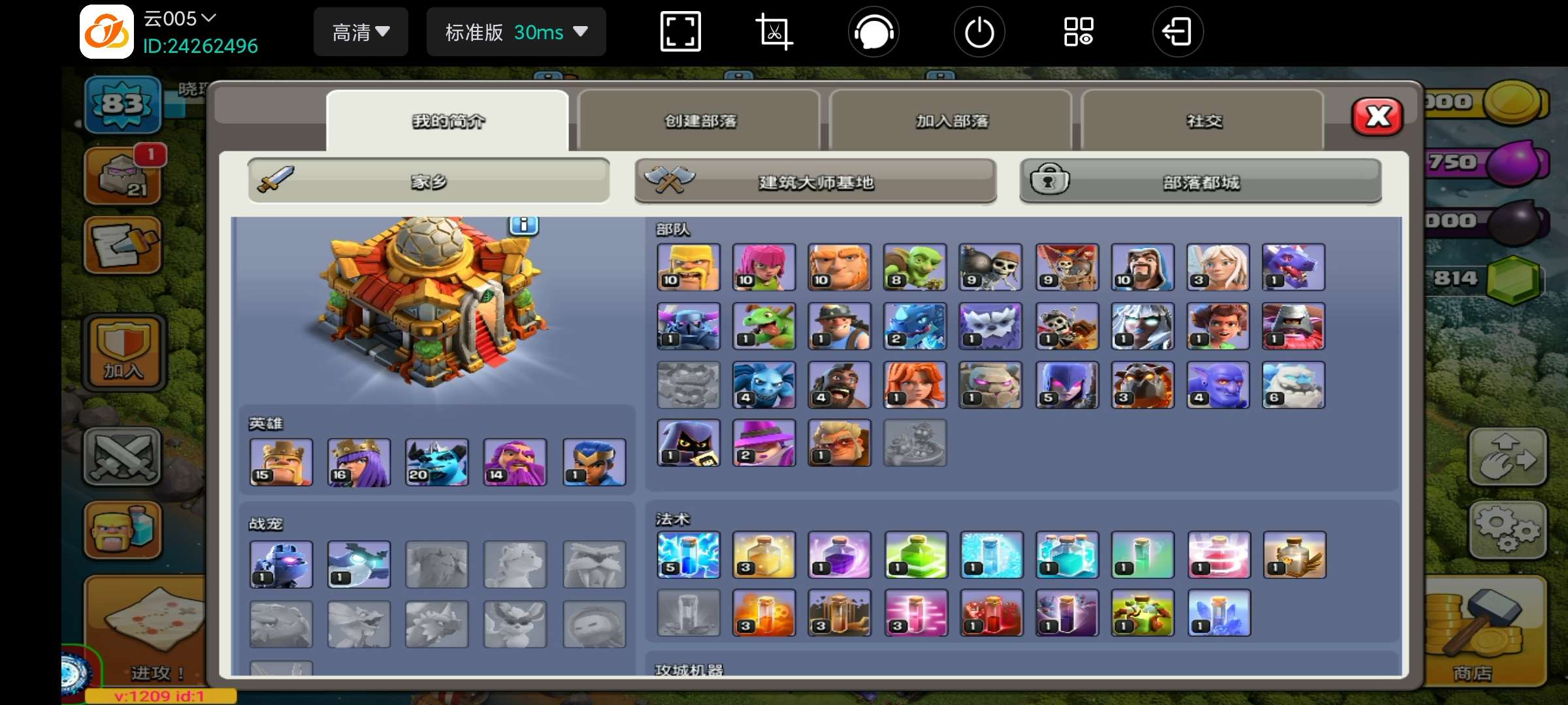 部落冲突国服安卓QQ,16本,宝石12000+,5农