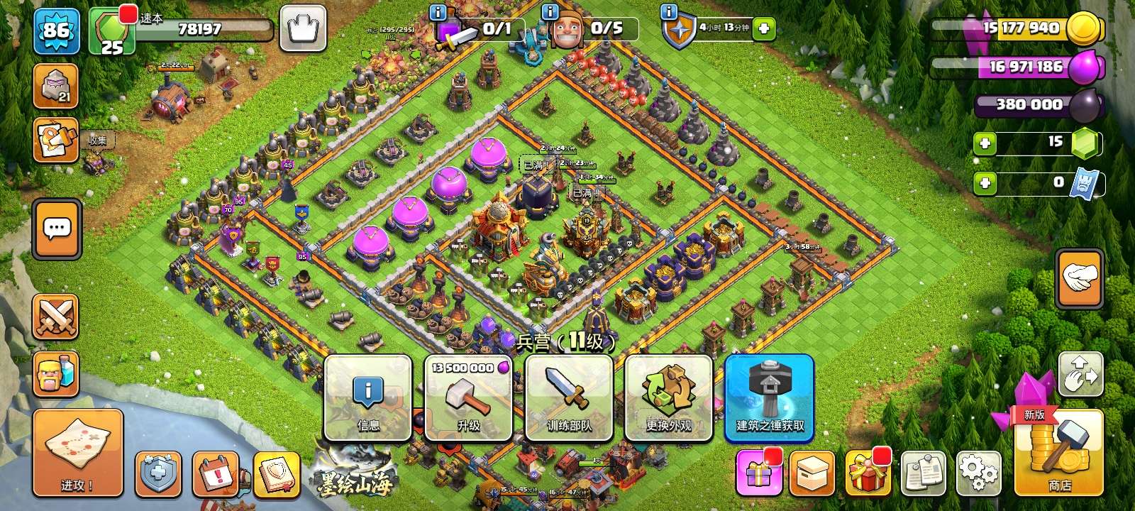 18本主流兵种基本升满了,王等级高,关键宠物也都快满了,史诗装备齐全,可换绑也可送未实名网易邮箱
