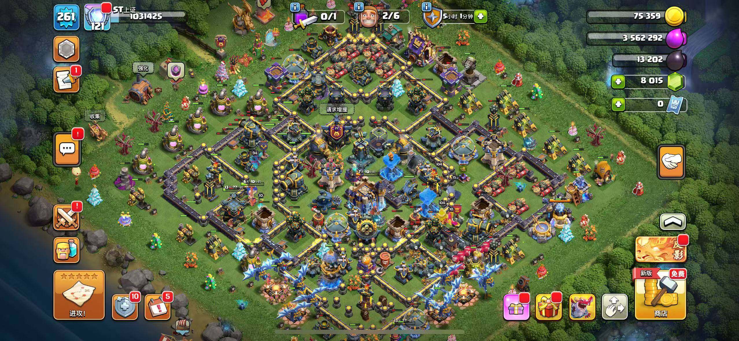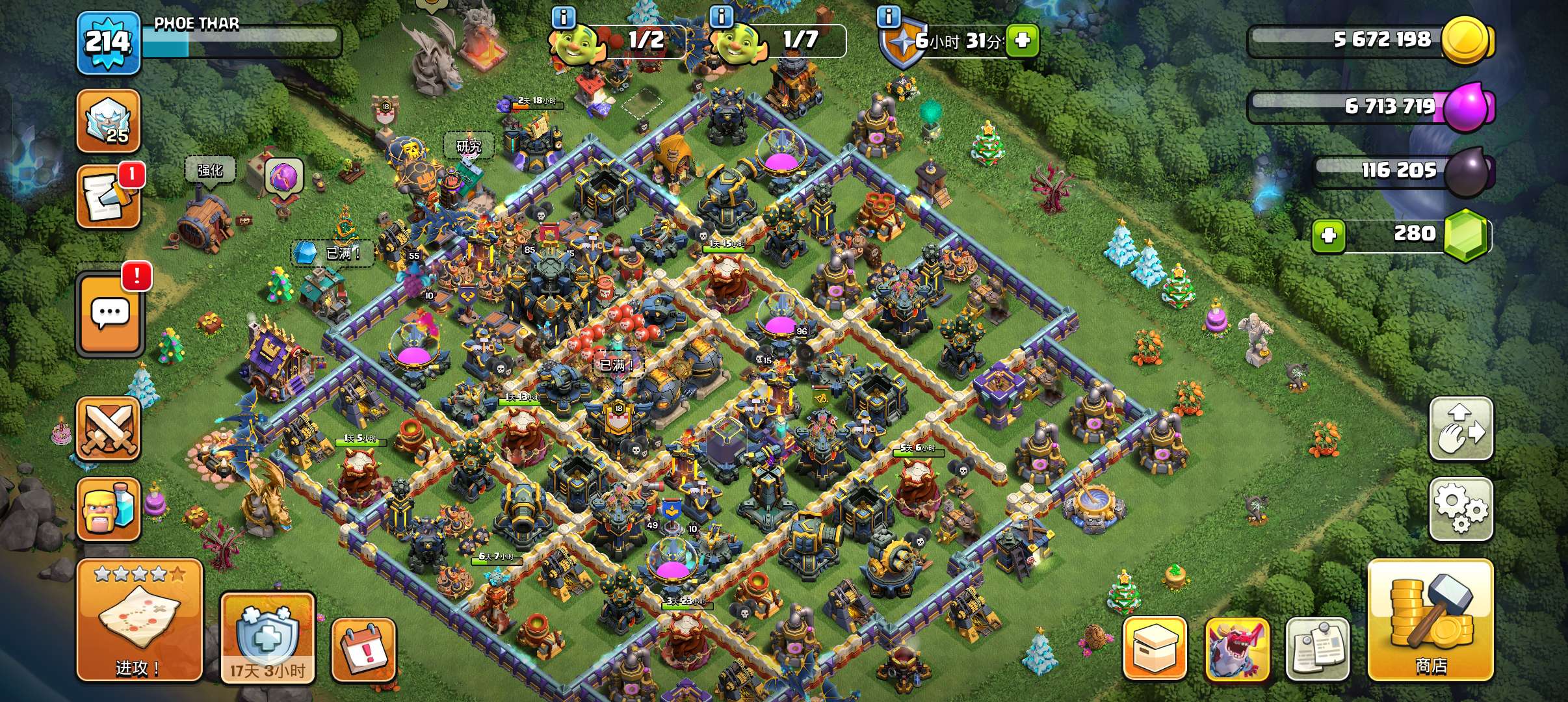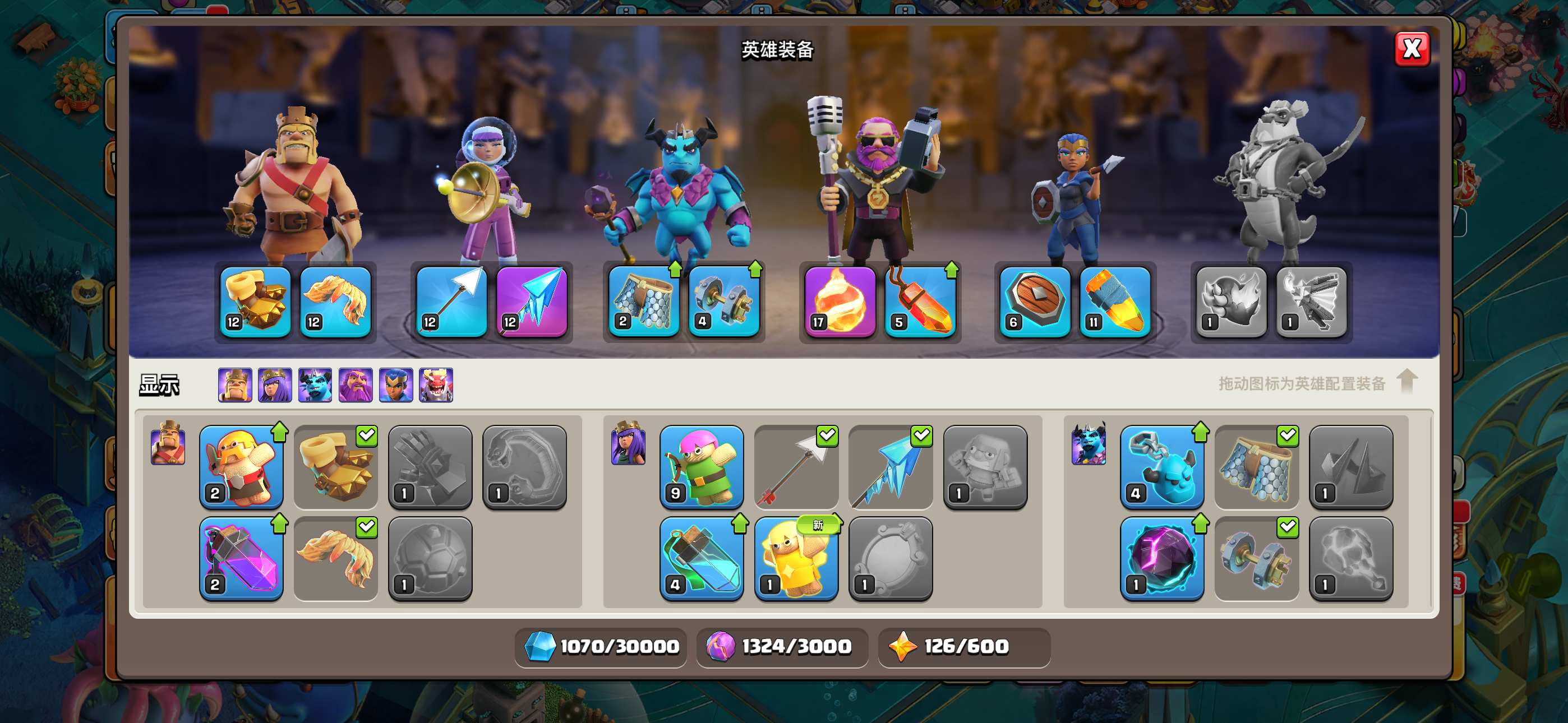部落冲突国际服18本满防号,防御建筑英雄装备几乎全满,可换绑