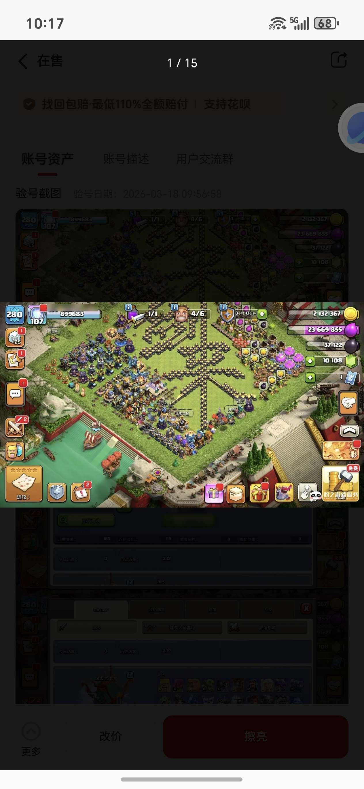 部落冲突国服号,18本,主世界夜世界城墙全部满级。额外送一个10级部落。账号等级15
