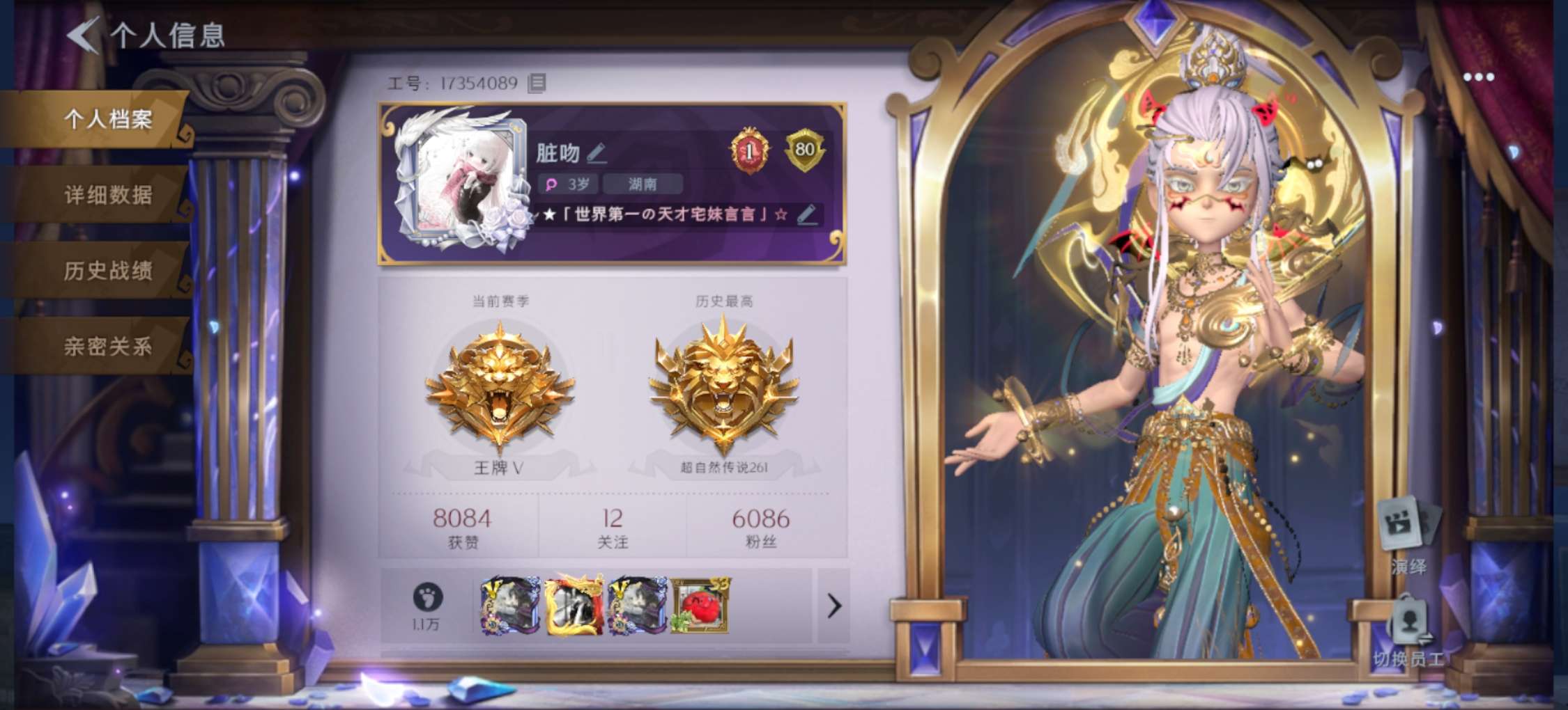 金色皮肤数量2紫色皮肤数量5道具皮肤数量二十A620