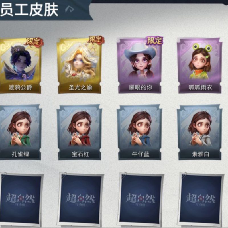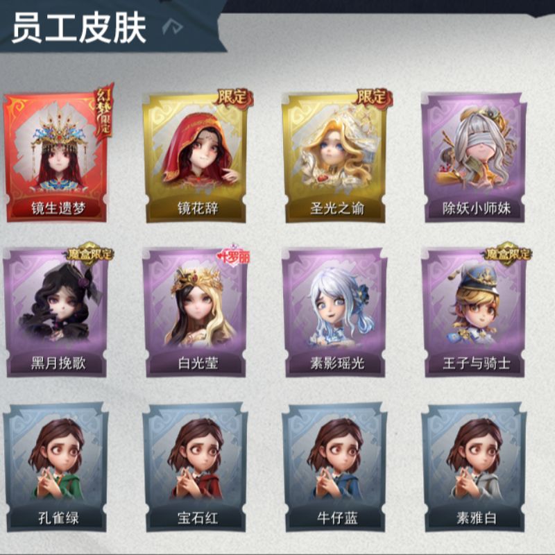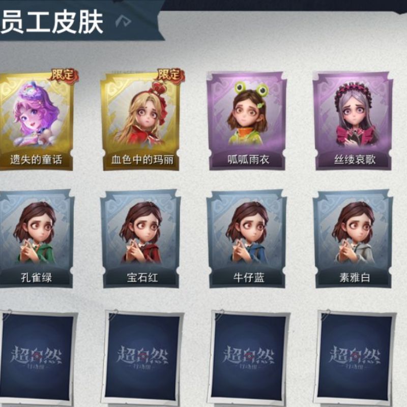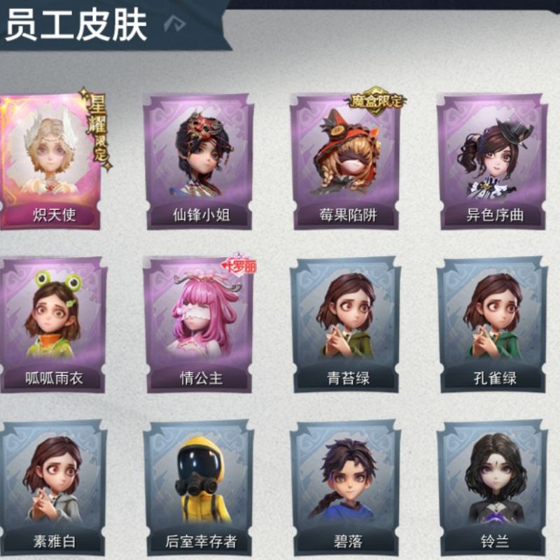 ZR290,金皮:2,紫皮:3,道具皮:9,铲铲币:61w,累充:5240金砖,服装:爱丽丝-血色中的玛丽,小黄-遗失的童话,薇薇安-黑月挽歌,爱丽丝-丝缕哀歌,小黄-呱呱雨衣,员工:小黄、爱丽丝、零、逍遥、薇薇安、巫铃儿、莉莉、艾伦、爱德华,头饰:鱼头怪头套、烈焰红唇头套、大葱明头套、火爆了头套、面具马头套、