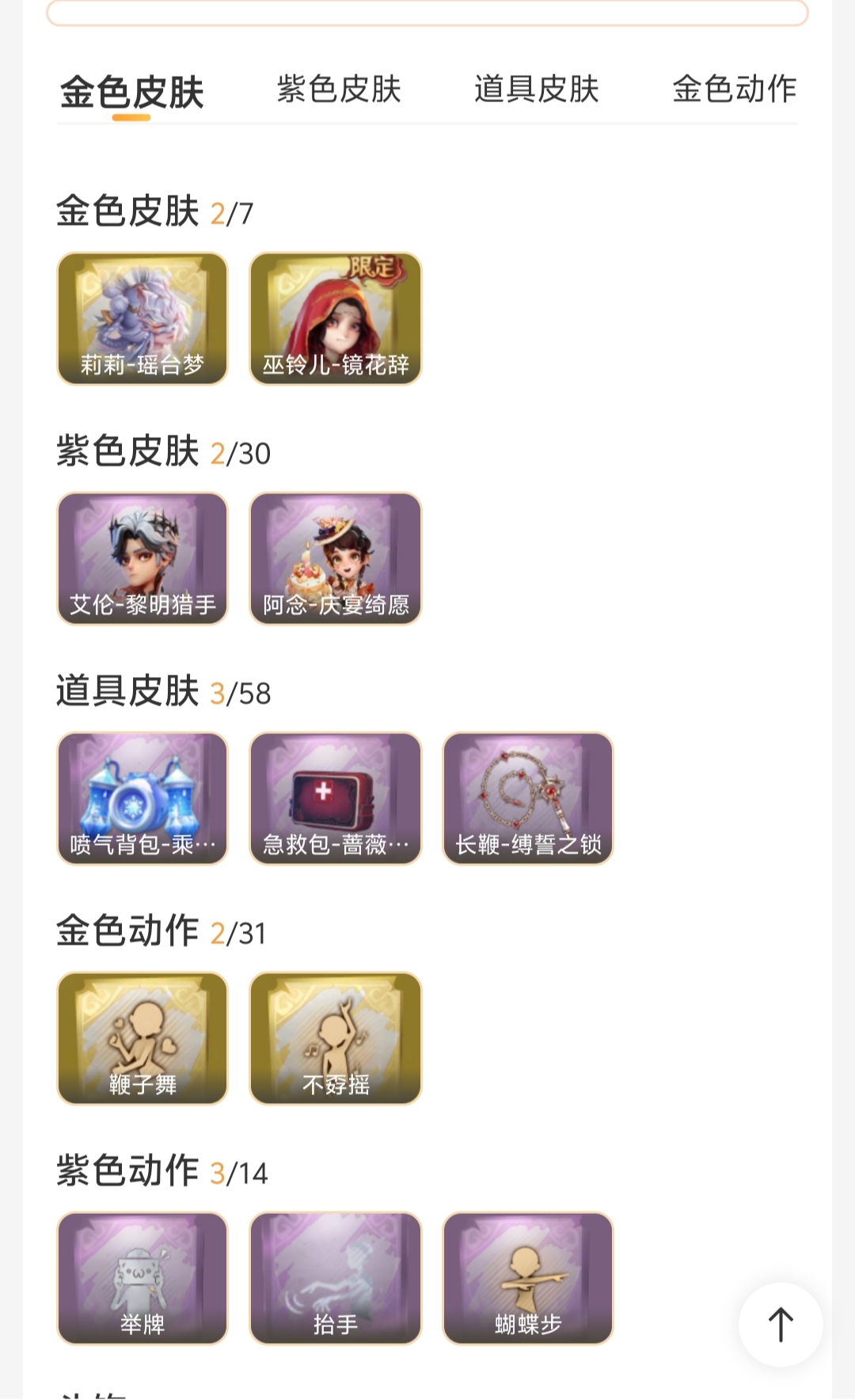 金色皮肤数量2紫色皮肤数量3道具皮肤数量十七A122