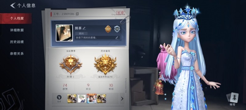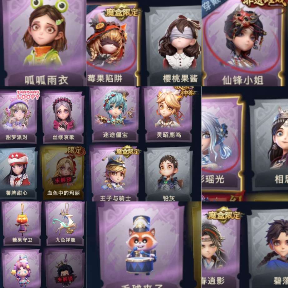 ZR174,红皮:1,金皮:3,紫皮:7,道具皮:37,铲铲币:614w,累充:31480金砖,幻梦皮肤:巫铃儿-镜生遗梦,金色皮肤:零-渡鸦公爵-薇薇安-圣光之谕-巫铃儿-镜花辞,紫色皮肤:兰-千夜星谕-零-搬开山-薇薇安-仙锋小姐-莉莉-莓果陷阱-莉莉-除妖小师妹-逍遥-绣春逍影-小黄-呱呱雨衣,员工:小黄-爱丽丝-零-逍遥-薇薇安-巫铃儿-莉莉-艾伦-