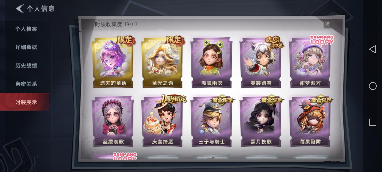 ZR105,金皮:1,紫皮:1,道具皮:4,铲铲币:94w,累充:6240金砖,金色皮肤:小黄-遗失的童话