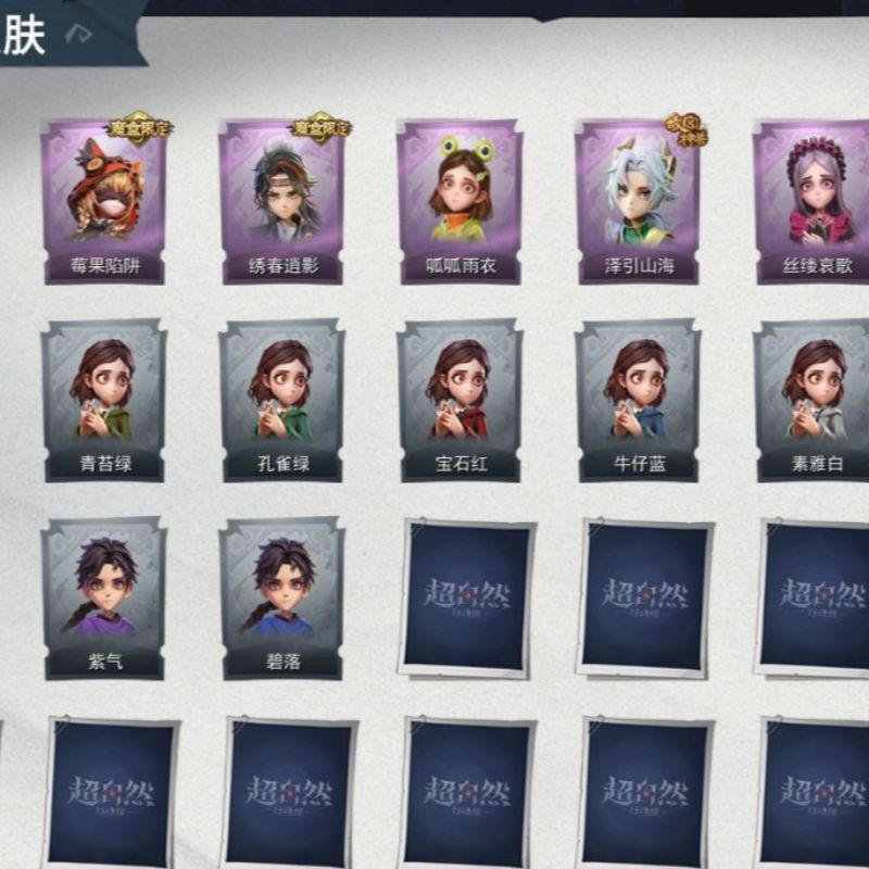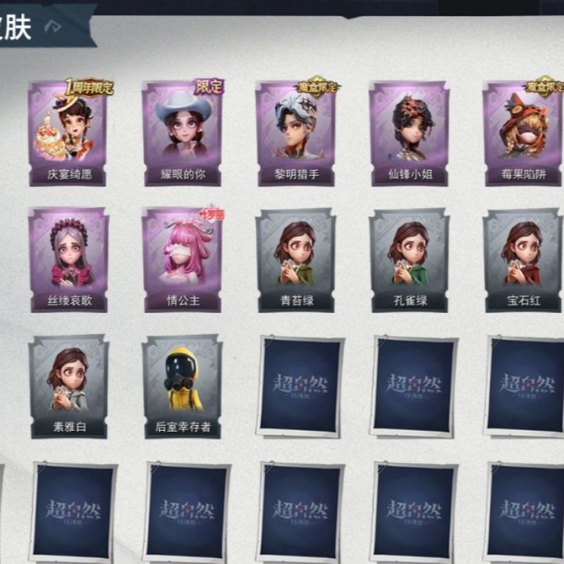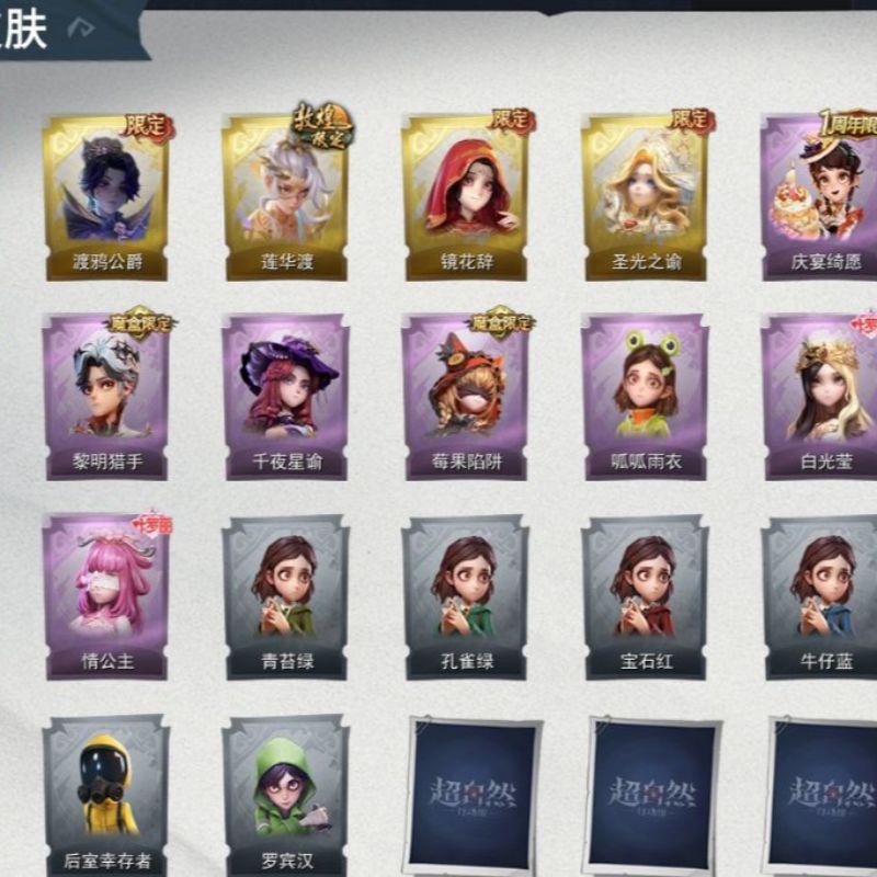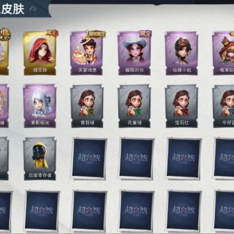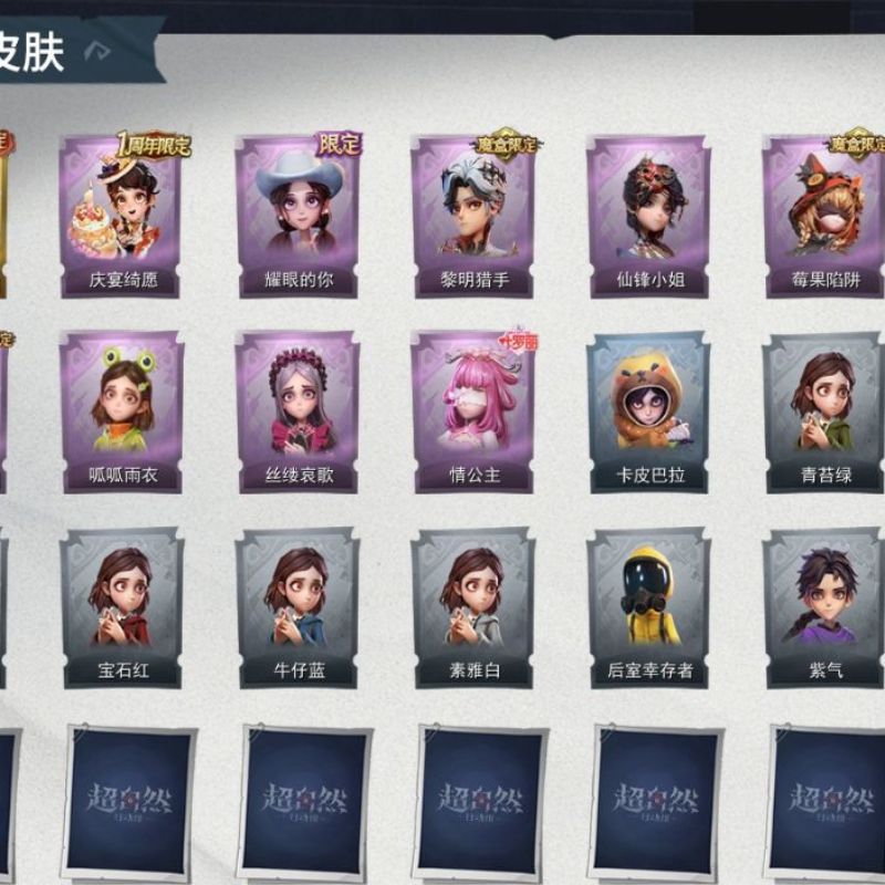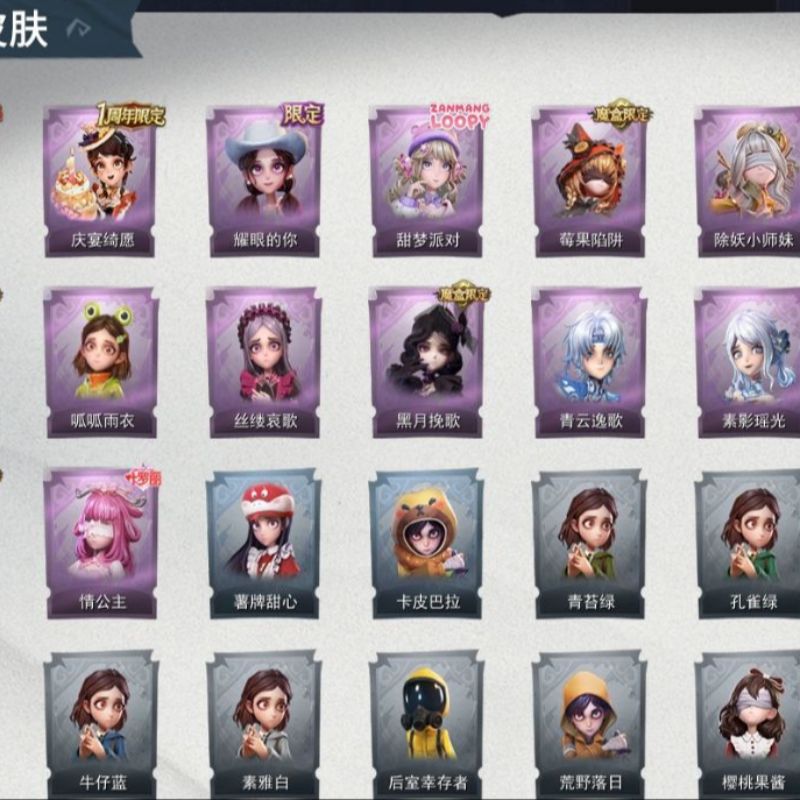 ZR764,金皮:1,紫皮:13,道具皮:22,服装:爱丽丝-薯牌甜心,零-卡皮巴拉,小黄-青苔绿,小黄-孔雀绿,小黄-宝石红,小黄-牛仔蓝,小黄-素雅白,小黄-后室幸存者,零-荒野落日,莉莉-樱桃
