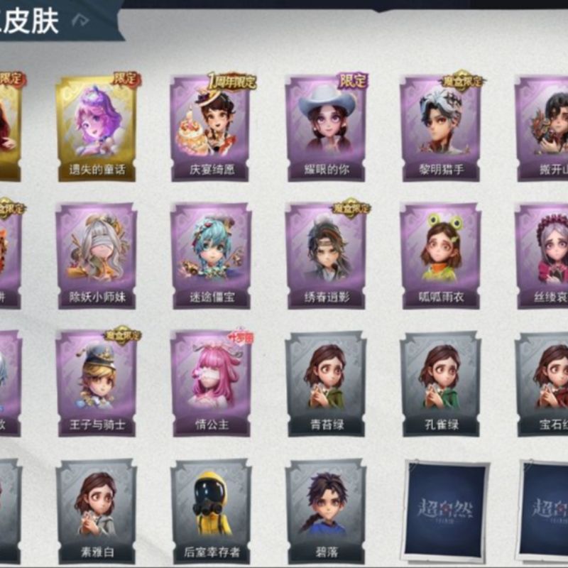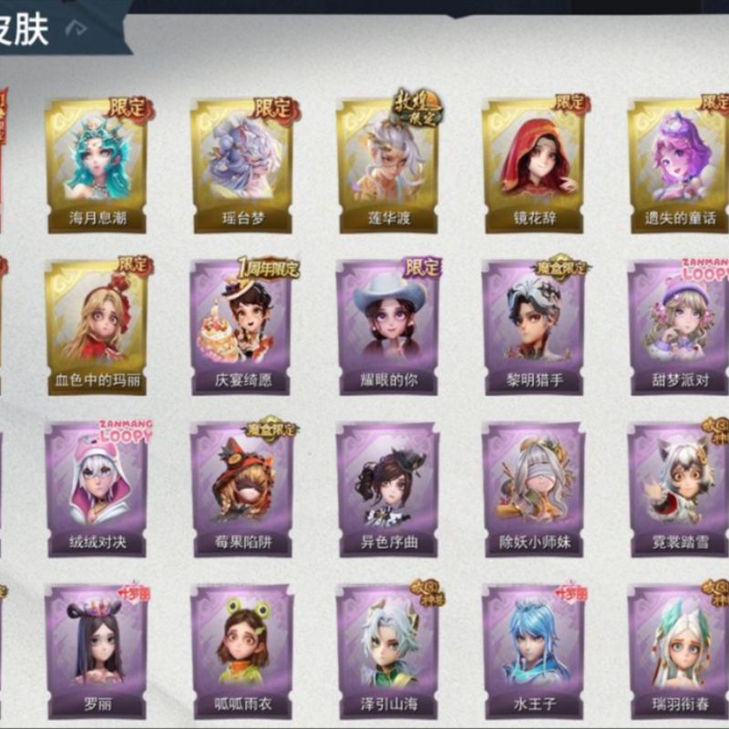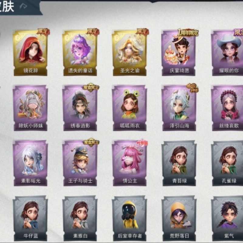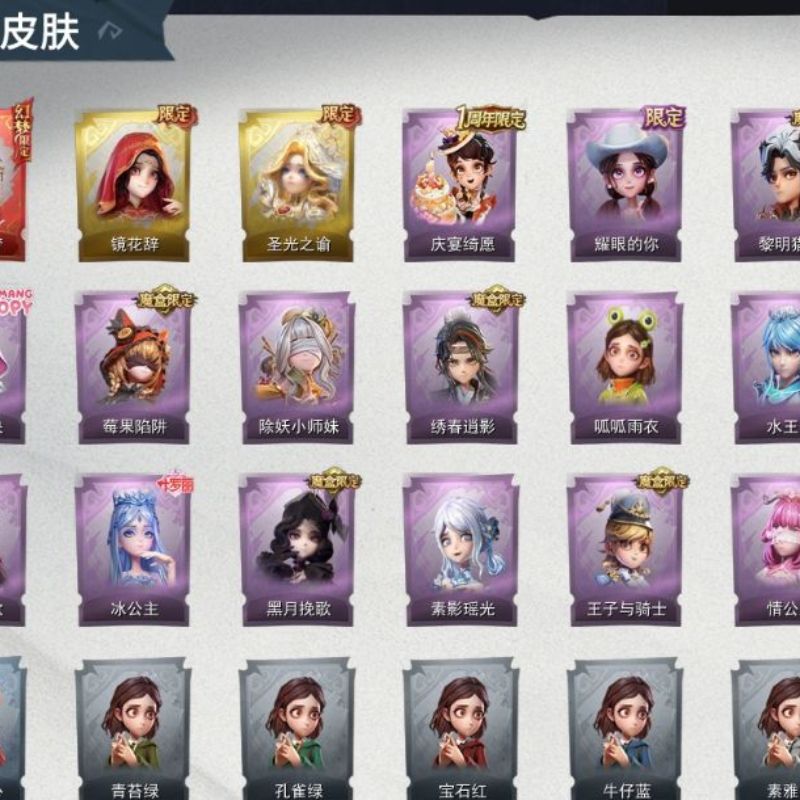 ZR779,红皮:1,金皮:3,紫皮:9,道具皮:21,服装:巫铃儿-镜生遗梦、薇薇安-圣光之谕、小黄-遗失的童话、