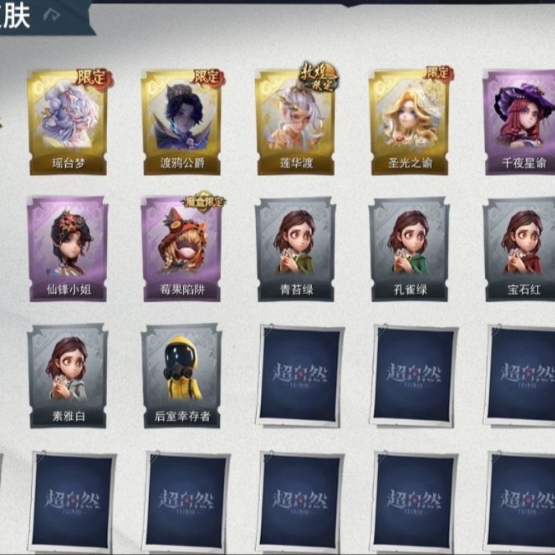 ZR777,红皮:1,金皮:7,紫皮:25,道具皮:67,服装:巫铃儿-镜生遗梦、薇薇安-海月息潮、莉莉-瑶台梦、