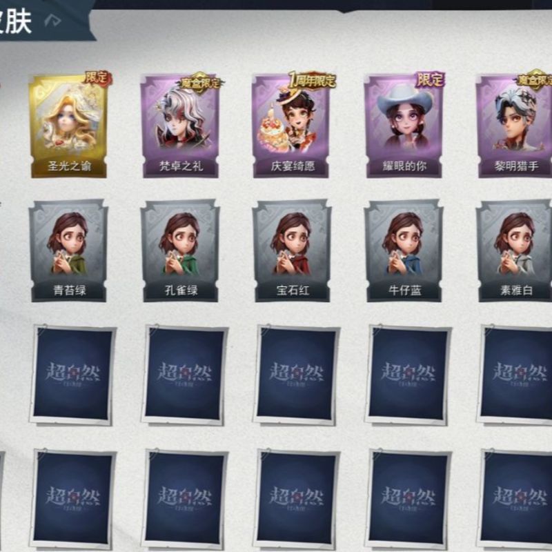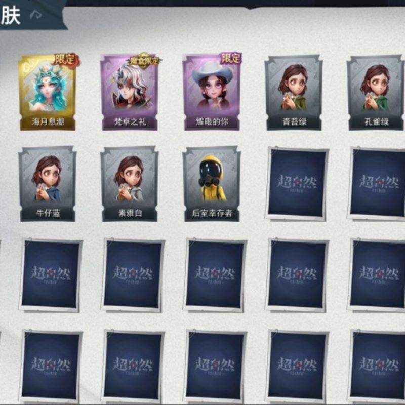 ZR765,红皮:1,金皮:1,紫皮:2,道具皮:13,服装:薇薇安-沧海之遗,薇薇安-海月息潮,爱德华-梵卓之礼,爱丽丝-耀眼的你,道具皮肤:桃木剑-寂潮之刃,电击枪-权杖的许诺,铲子-龙鳞,腰