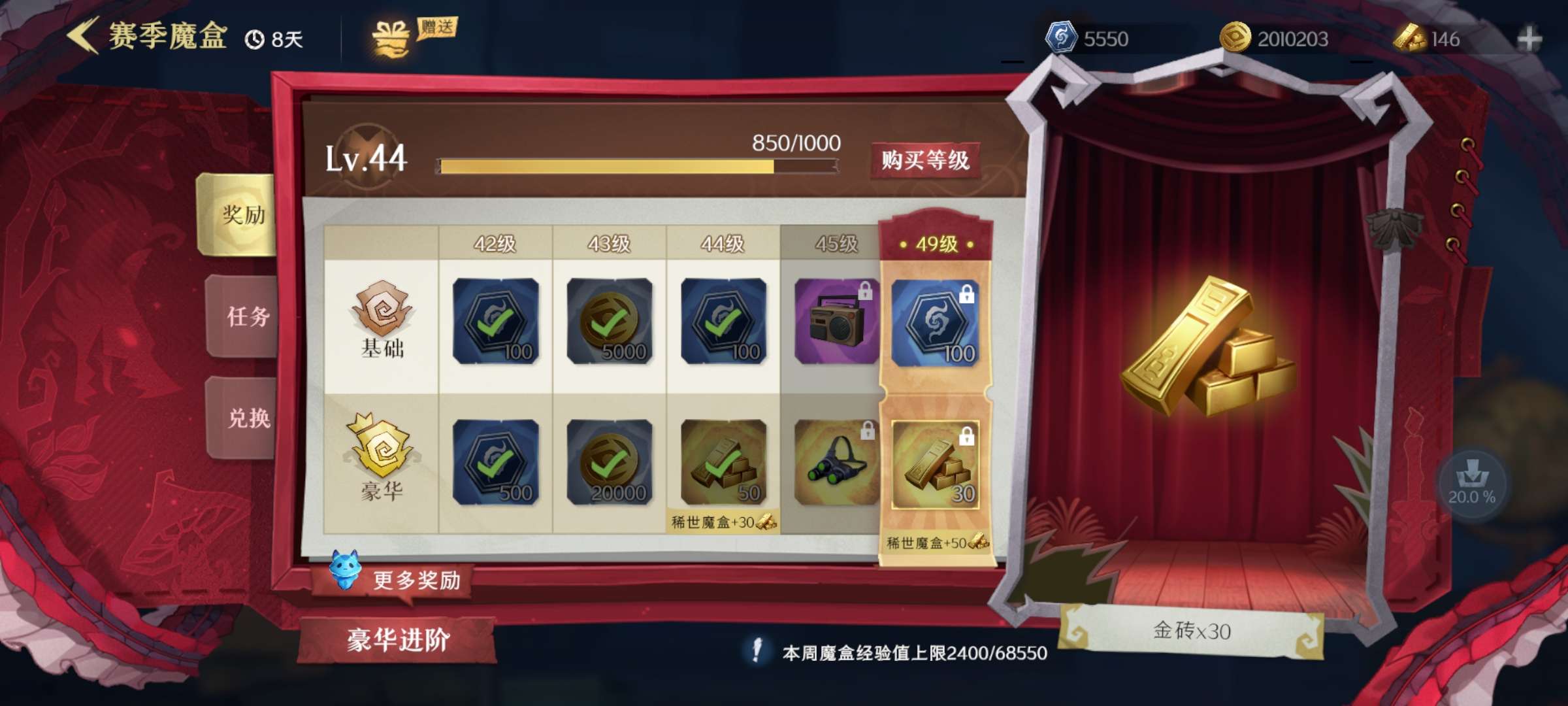 两个金8个紫 道具皮25里面有两个联动道具 氪条2100左右 号上还有150多金砖 两个梦居满级