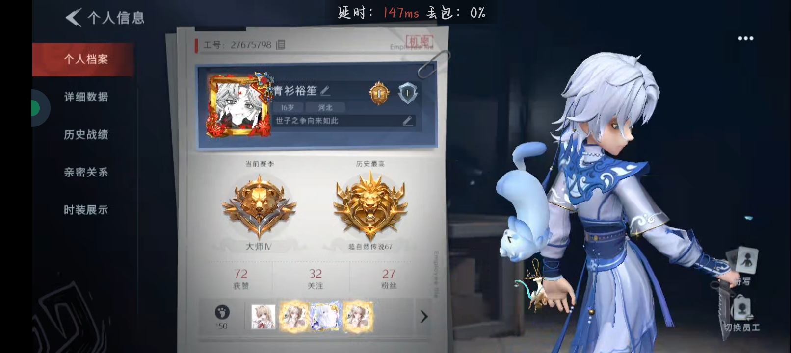 幻梦皮肤数量1-金色皮肤数量3-道具皮肤数量17-铲铲币1272135-累计充值12980