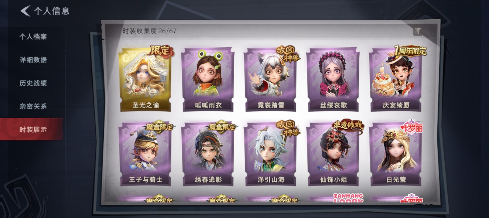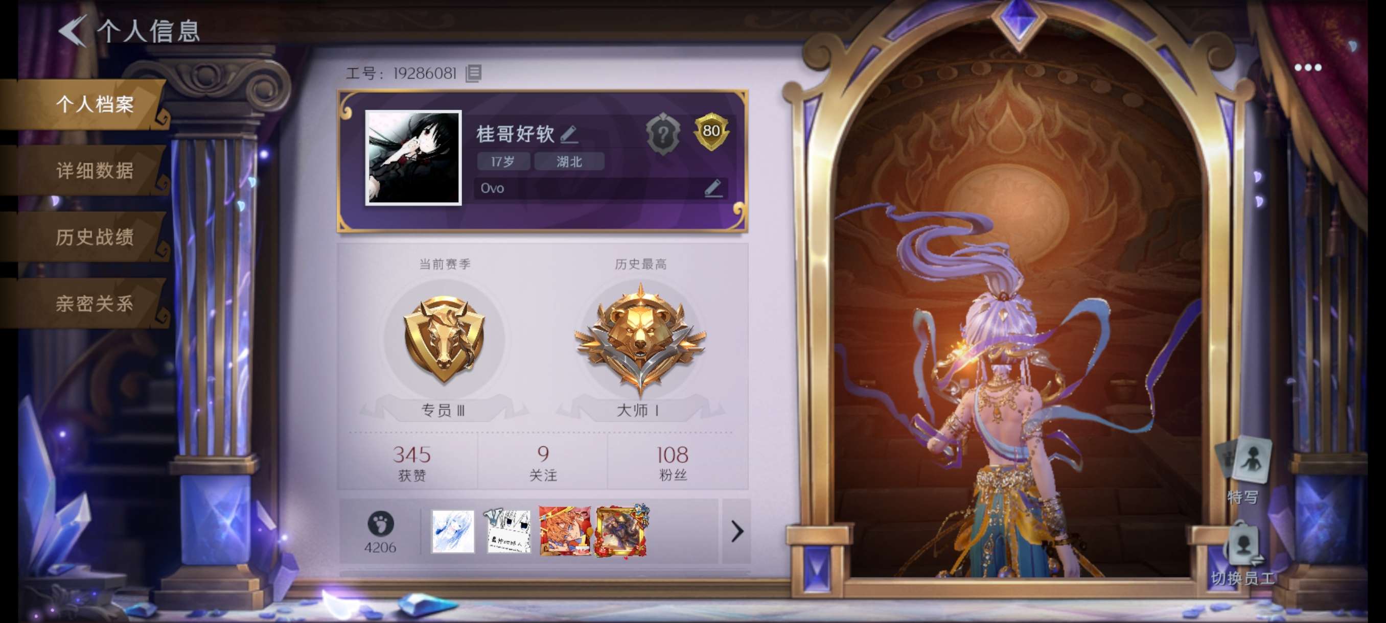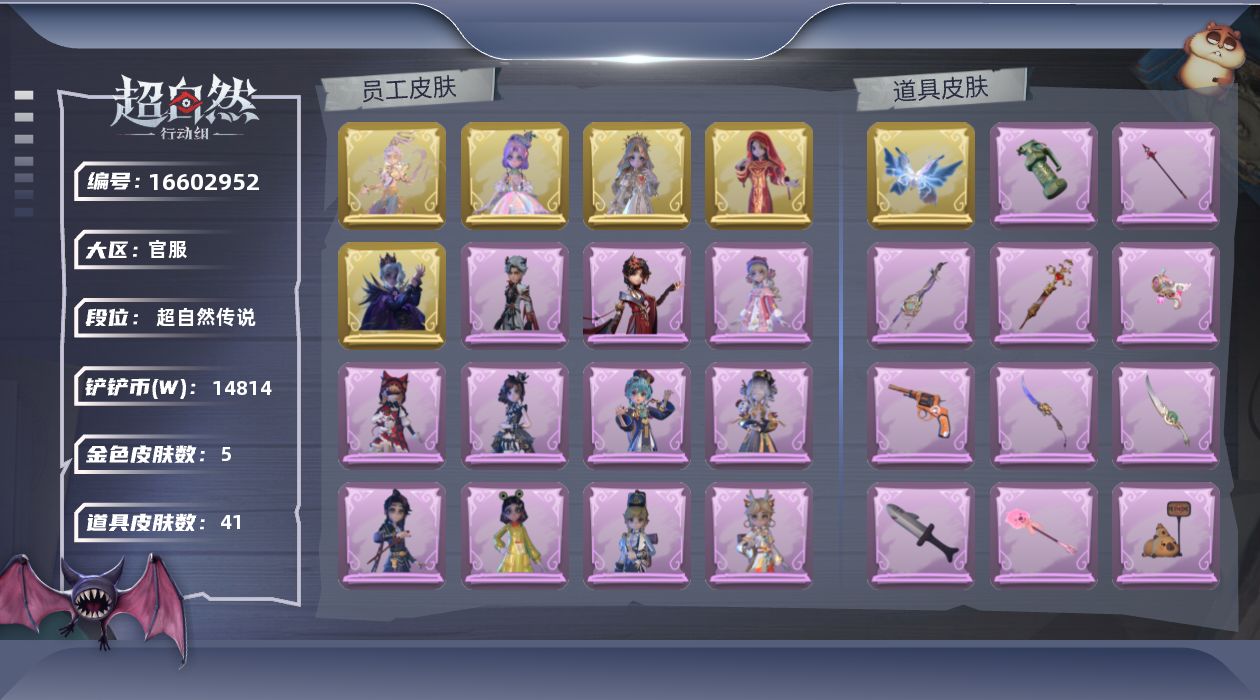 金色皮肤数量2紫色皮肤数量5道具皮肤数量A684