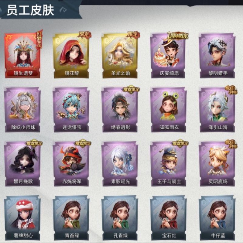 ZR329,红皮:0,粉皮:1,金皮:2,紫皮:7,道具皮:18,服装:零-渡鸦公爵、薇薇安-圣光之谕