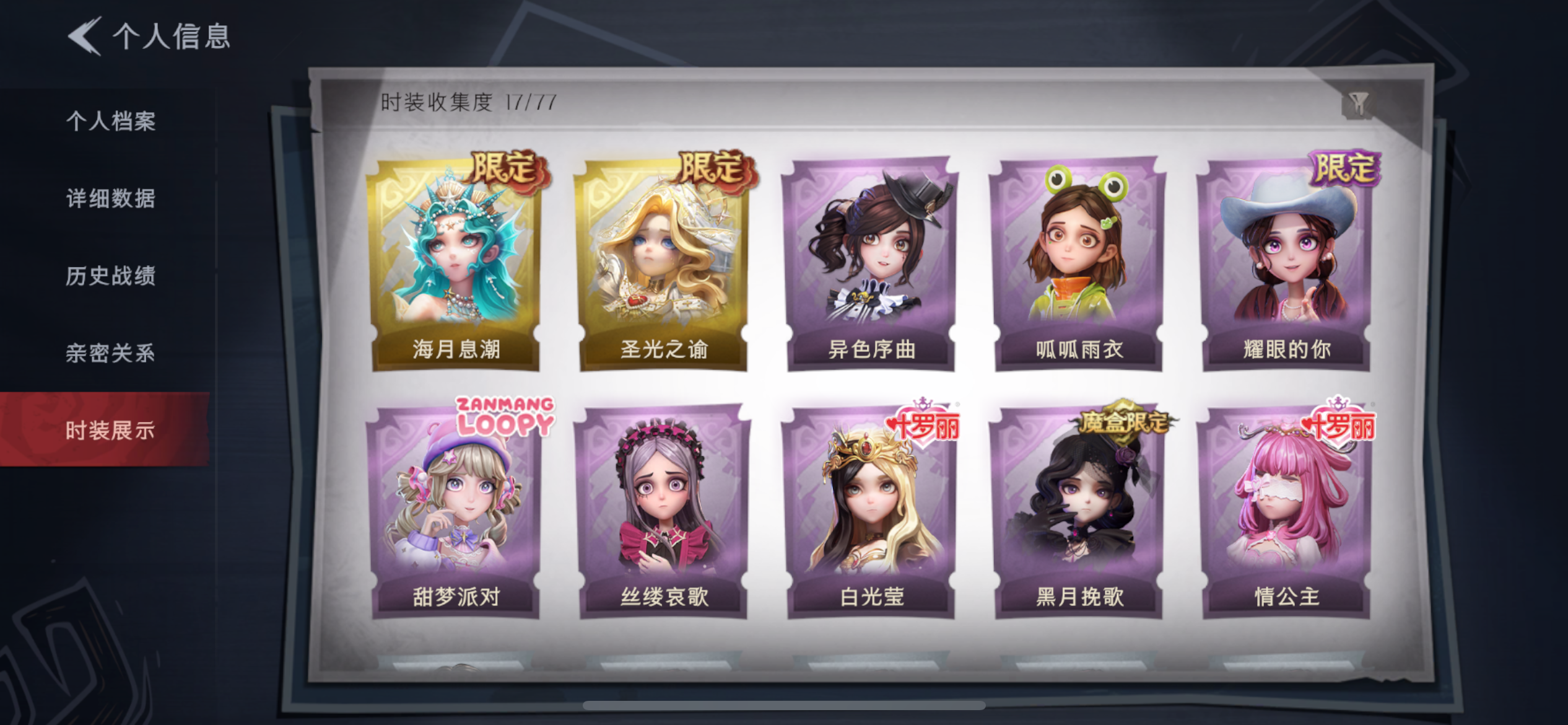 薇薇安-圣光之谕,莉莉-瑶台梦,薇薇安-海月息潮,艾伦-黎明猎手,莉莉-除妖