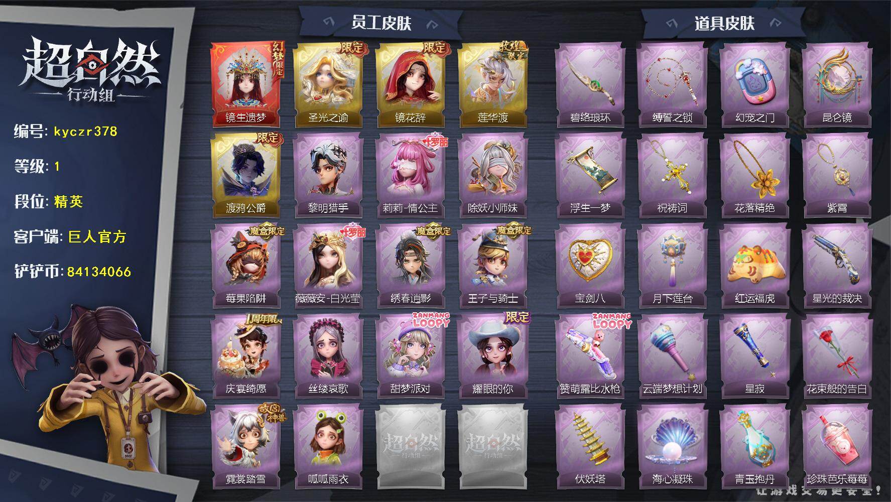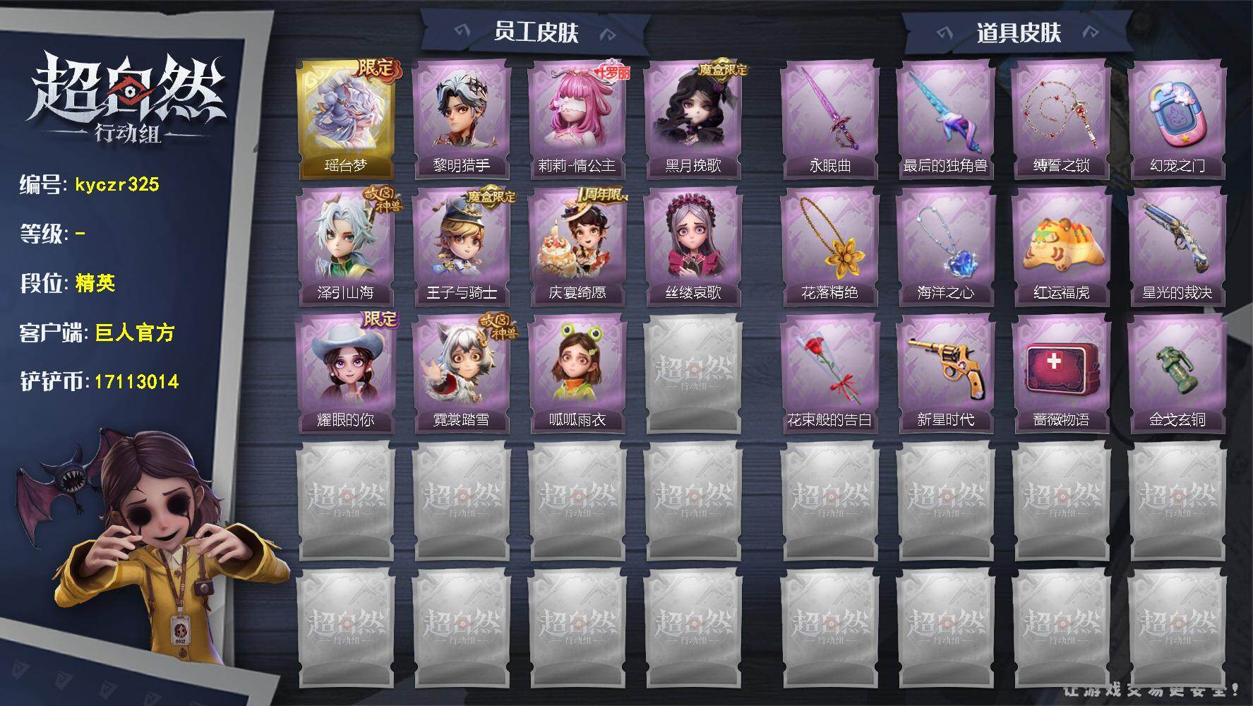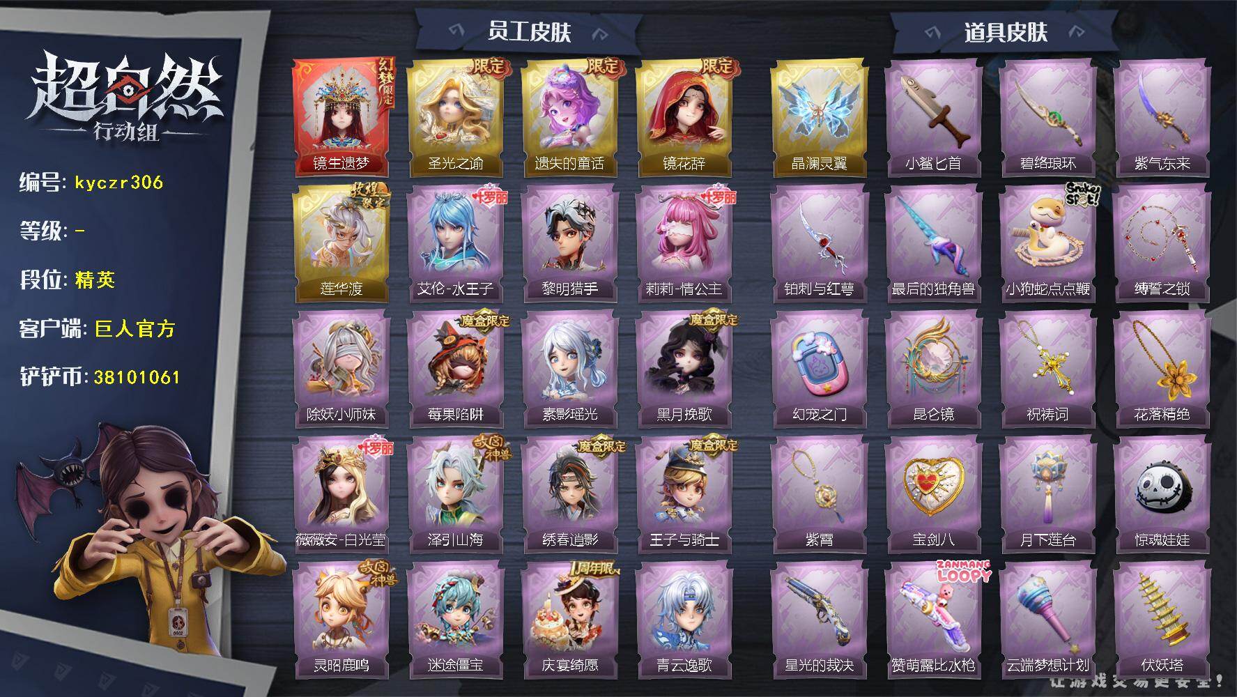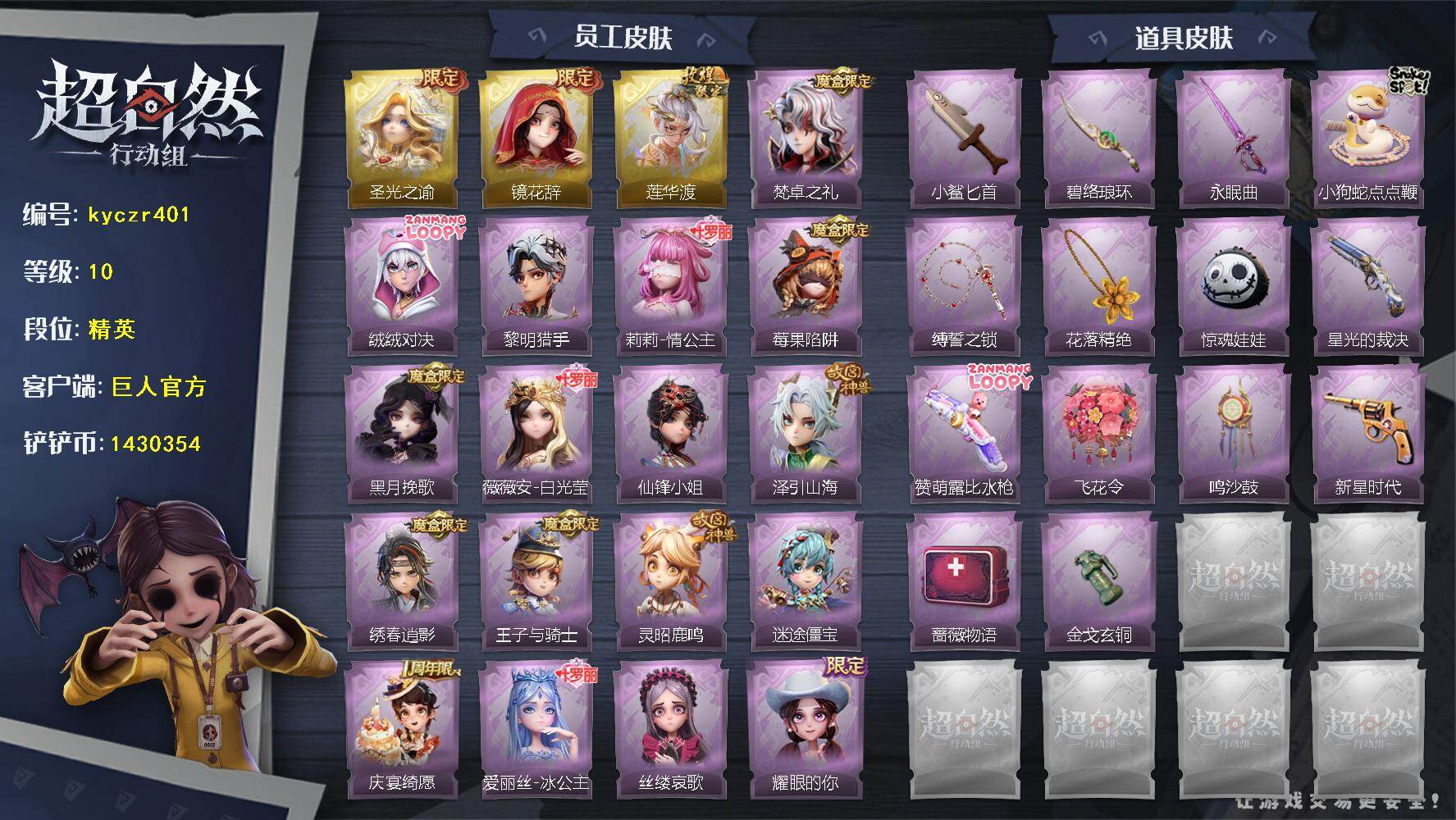 红皮0粉皮1金皮2紫皮12,道具皮25,小黄﹣炽天使,薇薇安﹣圣光之谕,巫铃儿﹣镜花辞,