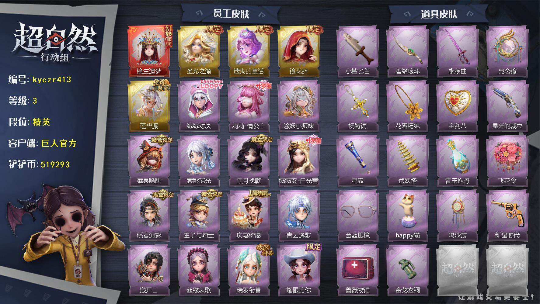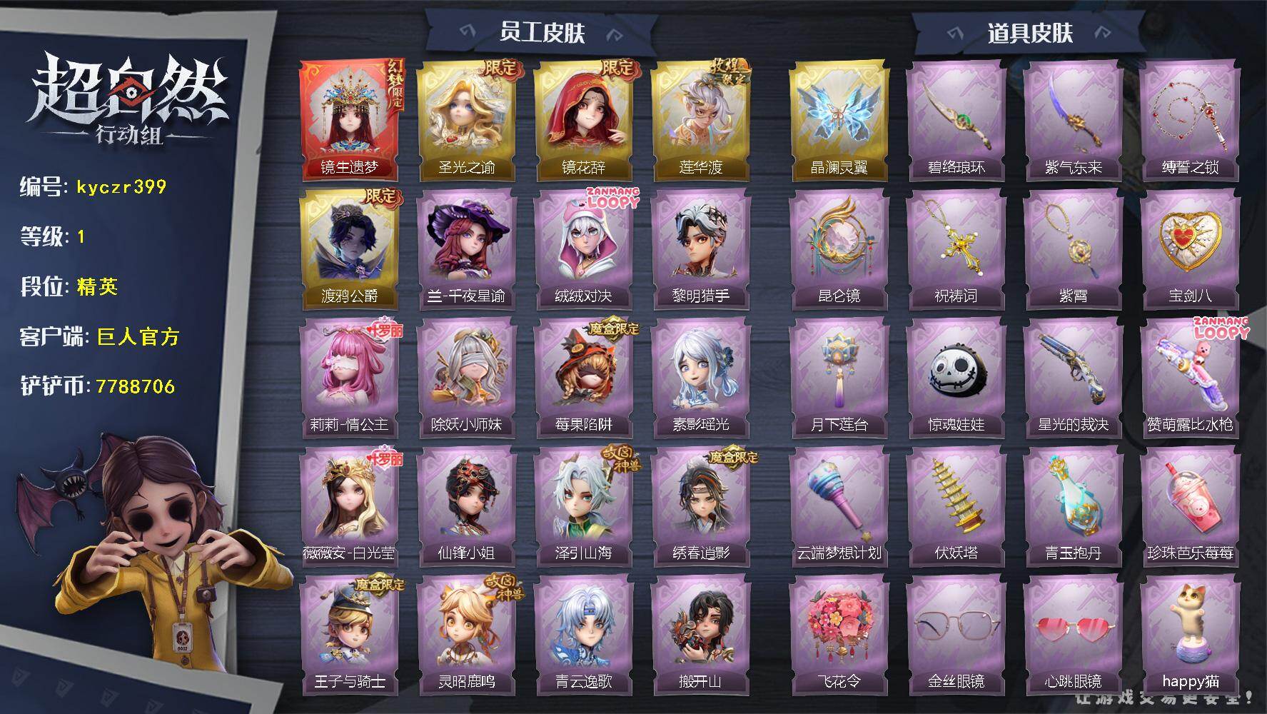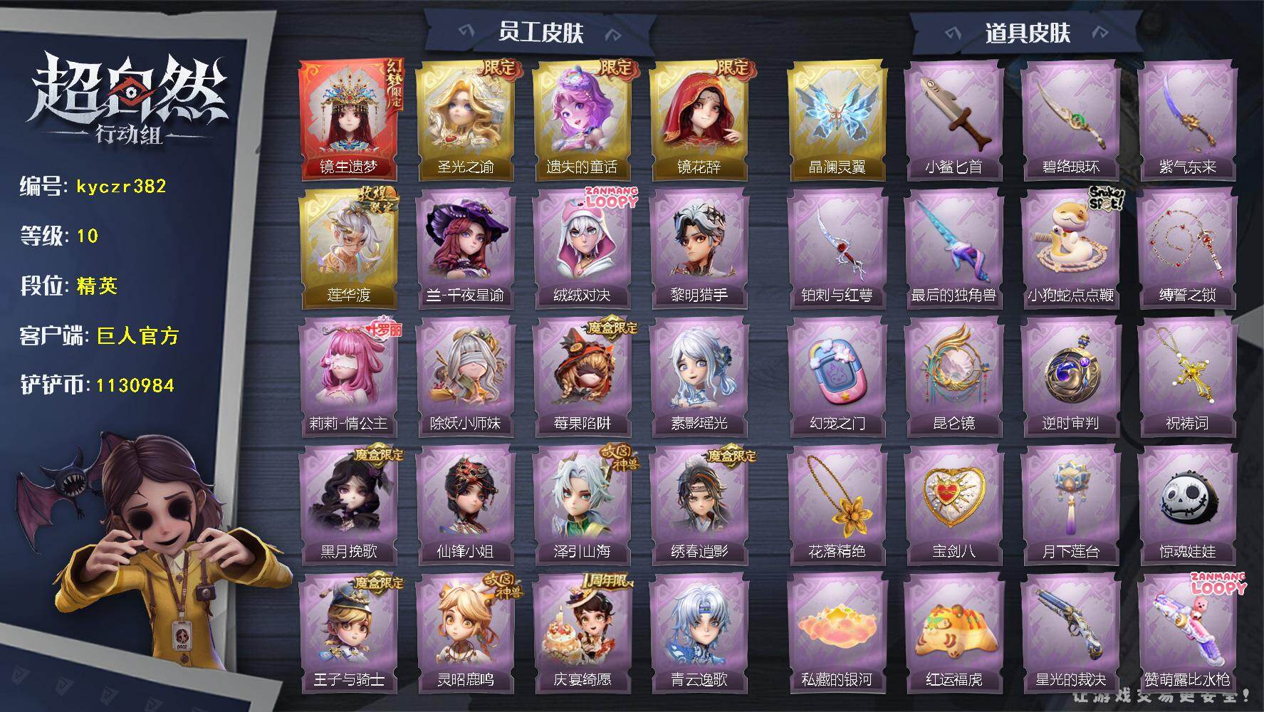 红皮0粉皮1金皮2紫皮12,道具皮25,小黄﹣炽天使,薇薇安﹣圣光之谕,巫铃儿﹣镜花辞,