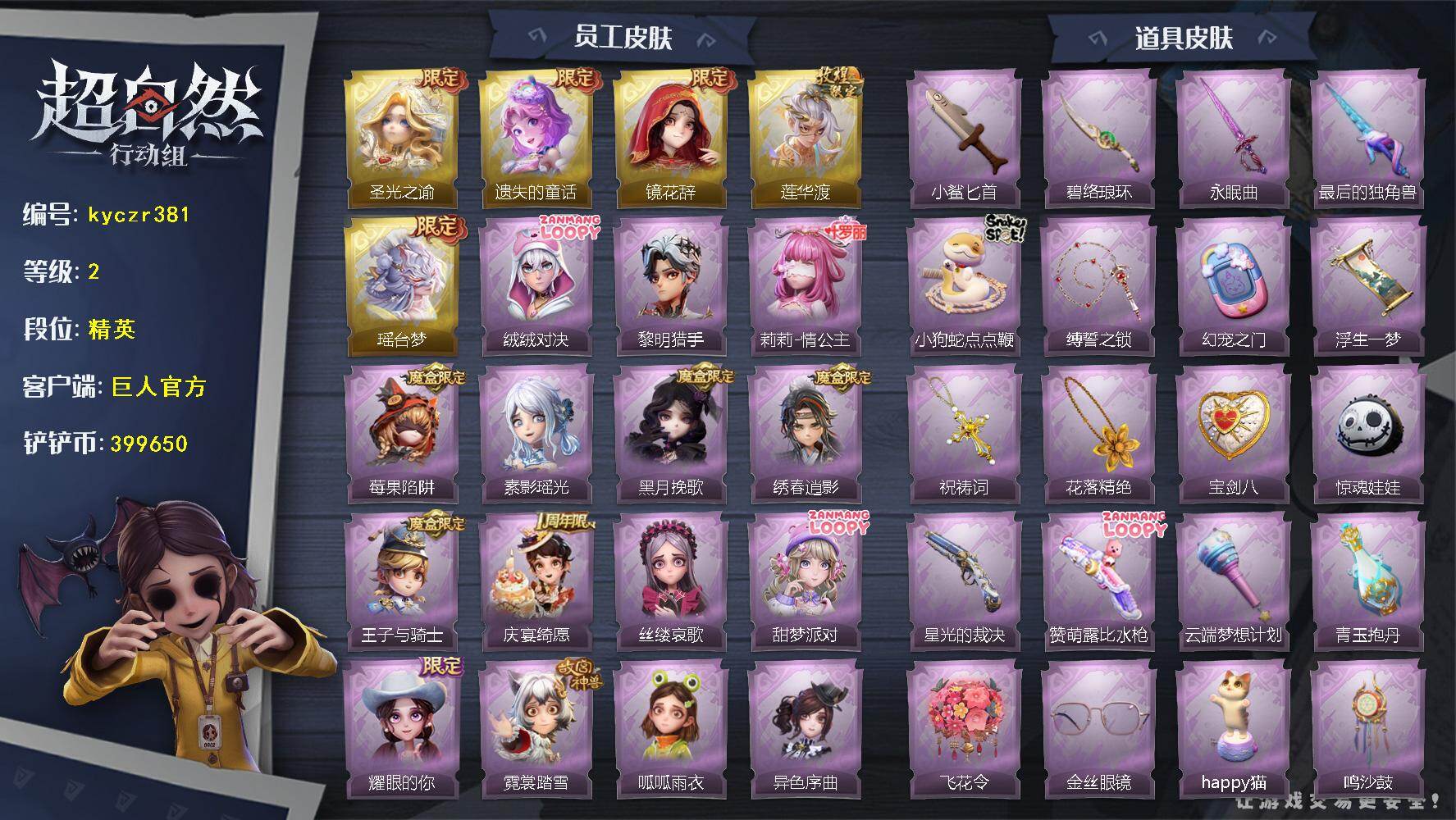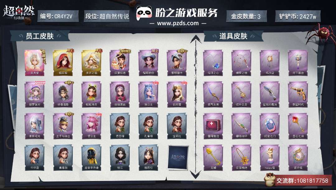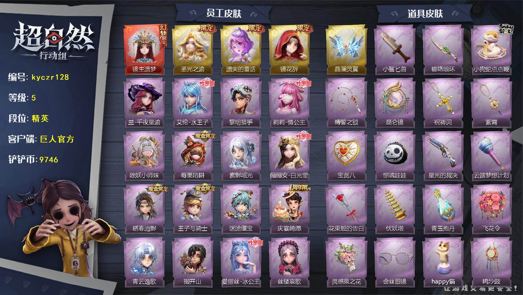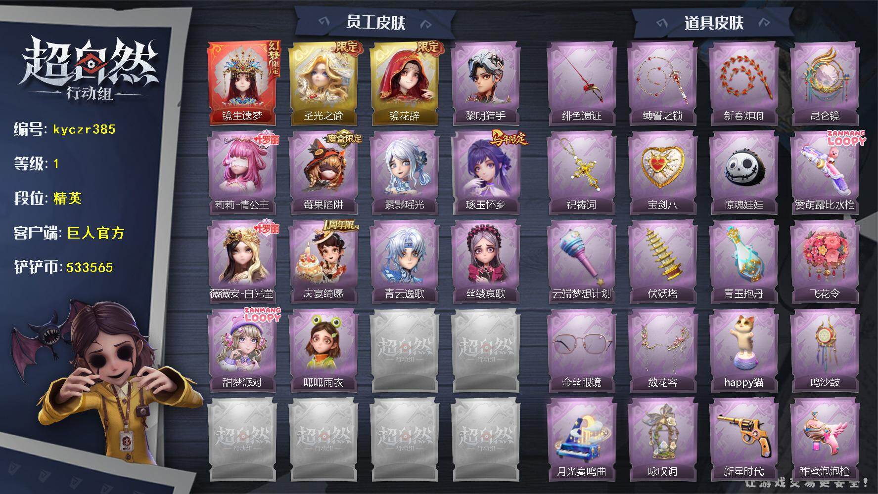 红皮0粉皮1金皮2紫皮12,道具皮25,小黄﹣炽天使,薇薇安﹣圣光之谕,巫铃儿﹣镜花辞,