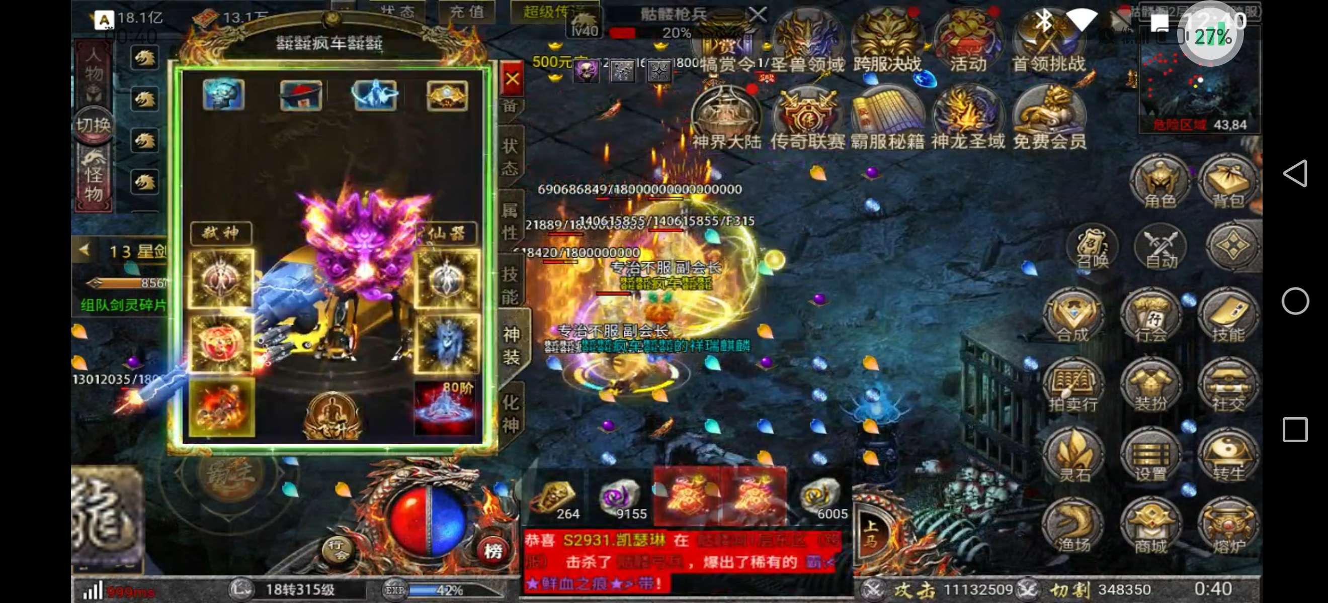 9377大平台.充值113万..大老号,该有的都有,充值没断过,战力1700万,底子超好,带s至尊1套,送十转武器和衣服带保险