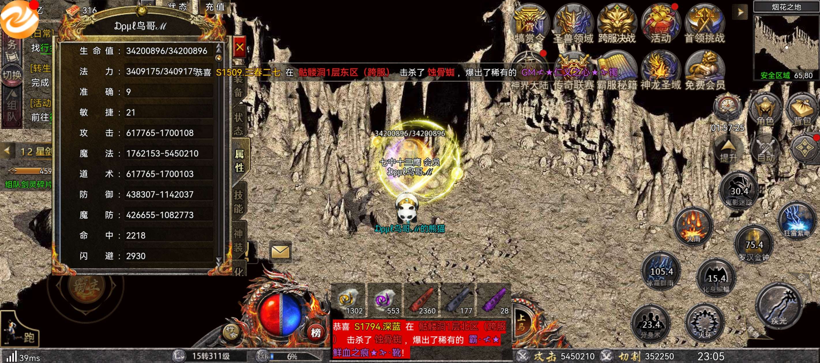 出售760+攻击法师号,烈火服。技能全,2级七剑。很多活人