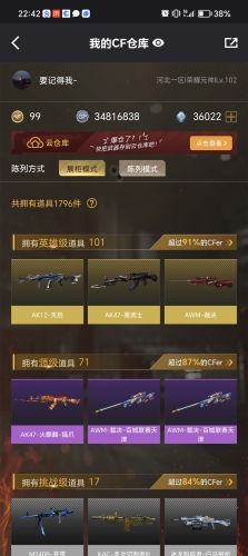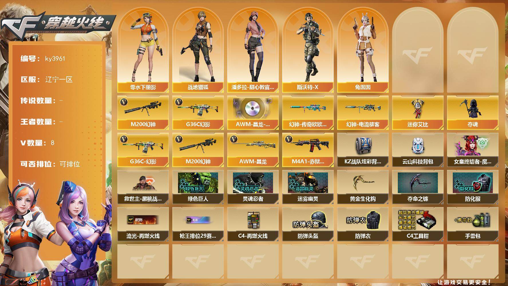 辽宁一区-8V-0王者-0炫金【热门武器】:G36C-幻影,M200-幻神