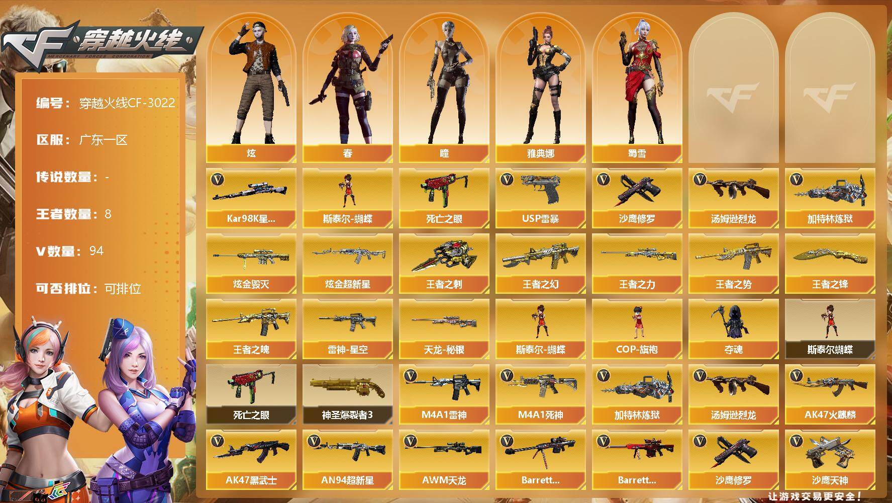 穿越火线(CF)【端游】广东一区-94V-8王者-4炫金 【热门武器】:死亡之眼,Kar98K-星神,