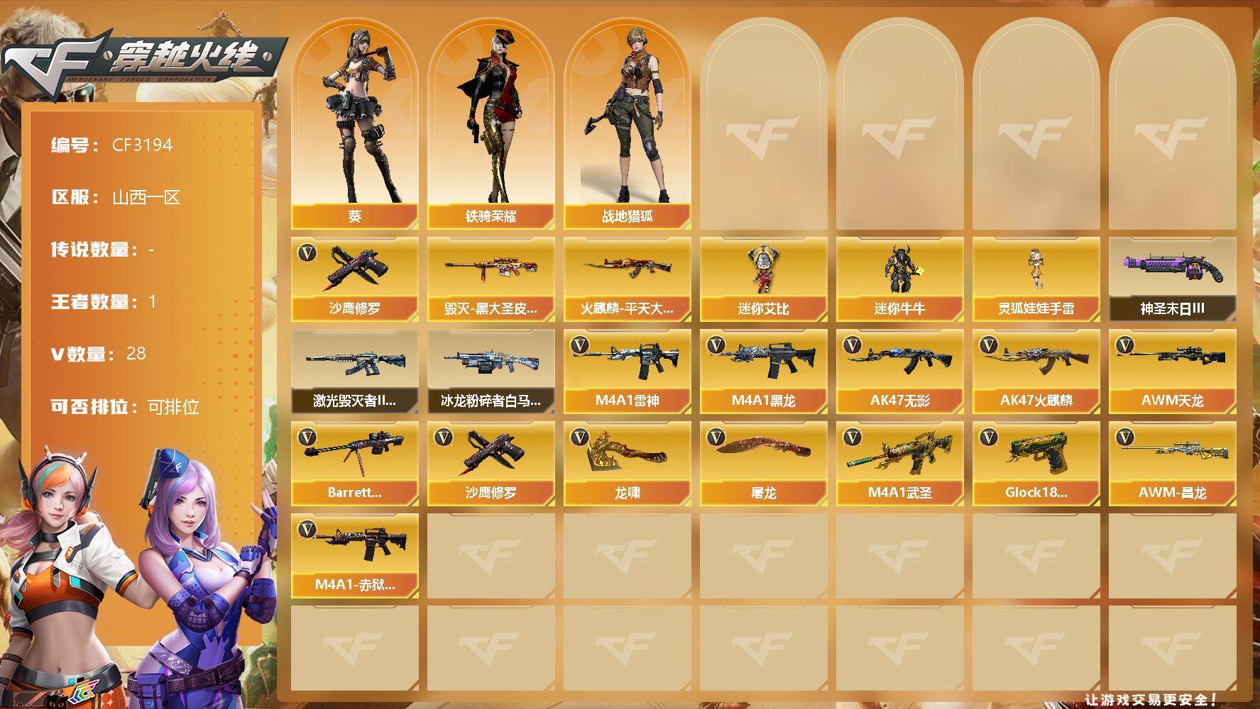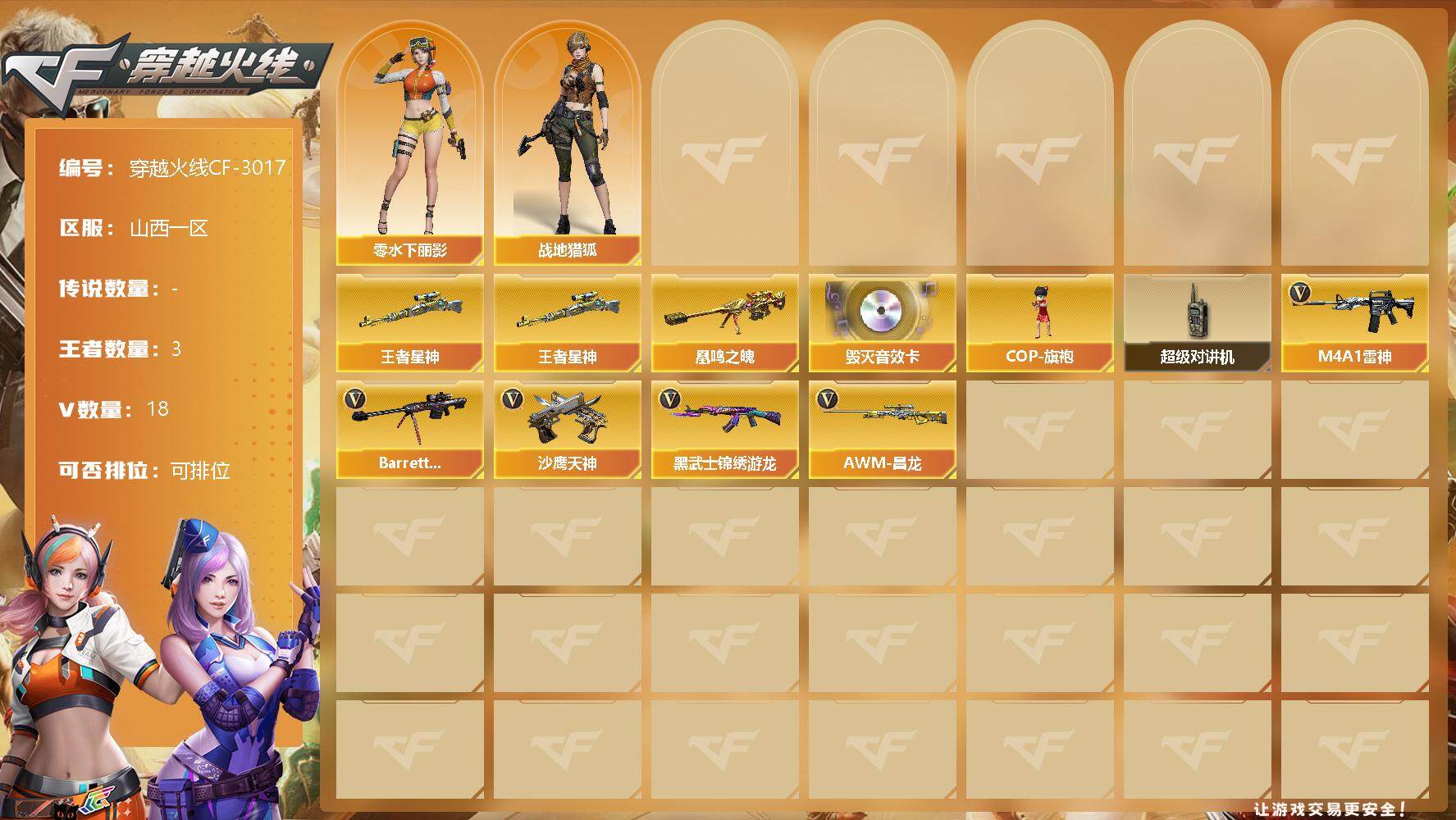 穿越火线(CF)【端游】山西一区-18V-3王者-0炫金 【热门武器】:王者星神 【王者炫金武器】:王