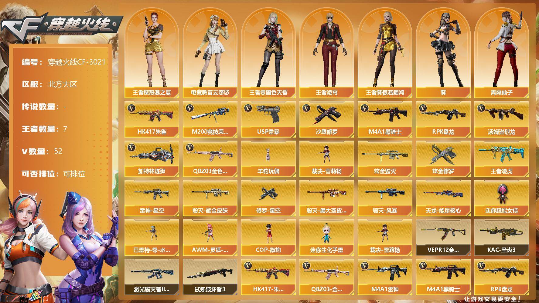 穿越火线(CF)【端游】北方大区-52V-7王者-3炫金 【热门武器】:QBZ03-金色蔷薇,HK41