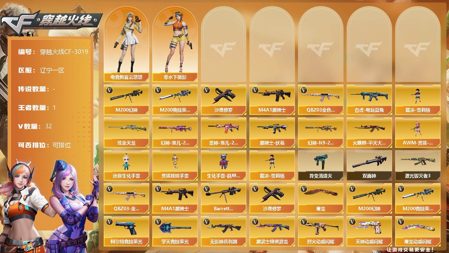 穿越火线(CF)【端游】黑龙江区-4V-2王者-0炫金【幻神1皮】【M200-幻神】【幻神-丹凤】【王