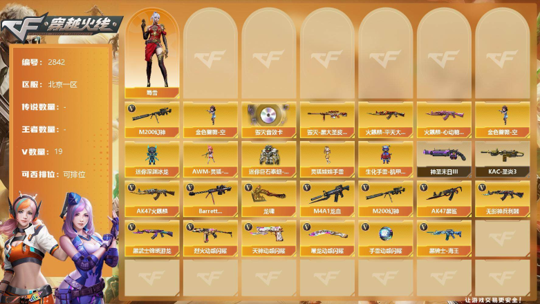 穿越火线(CF)【端游】北京一区-19V-0王者-0炫金【热门武器】:M200-