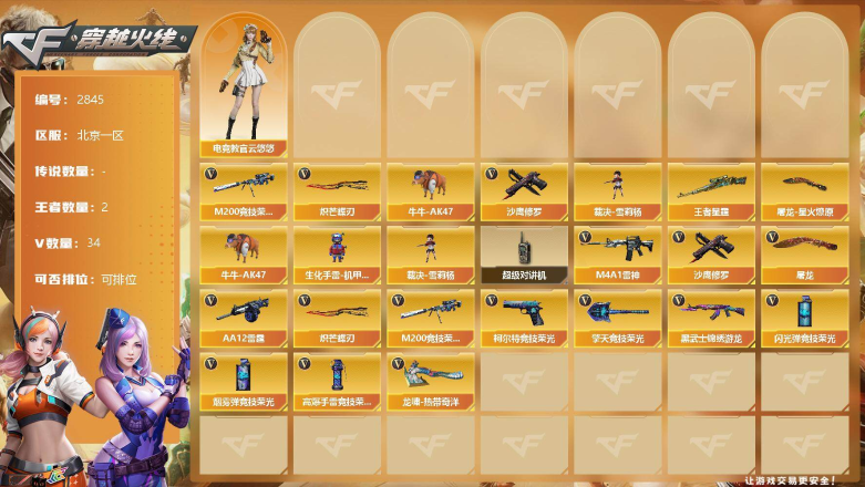 穿越火线(CF)【端游】北京一区-34V-2王者-0炫金【热门武器】:M200-