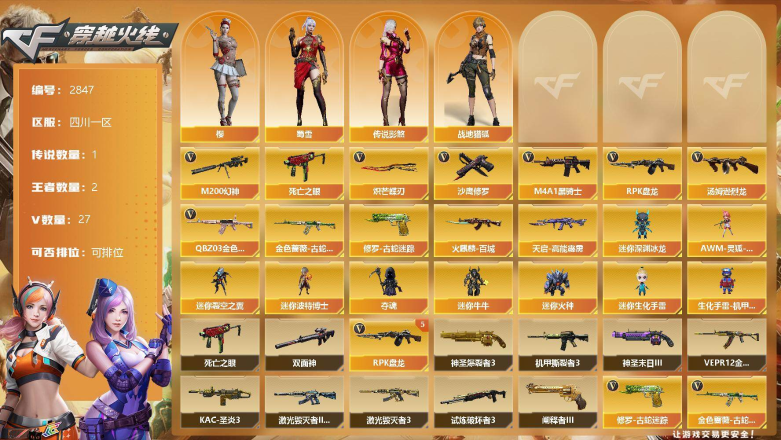 穿越火线(CF)【端游】四川一区-27V-2王者-0炫金【传说角色】:传说影煞