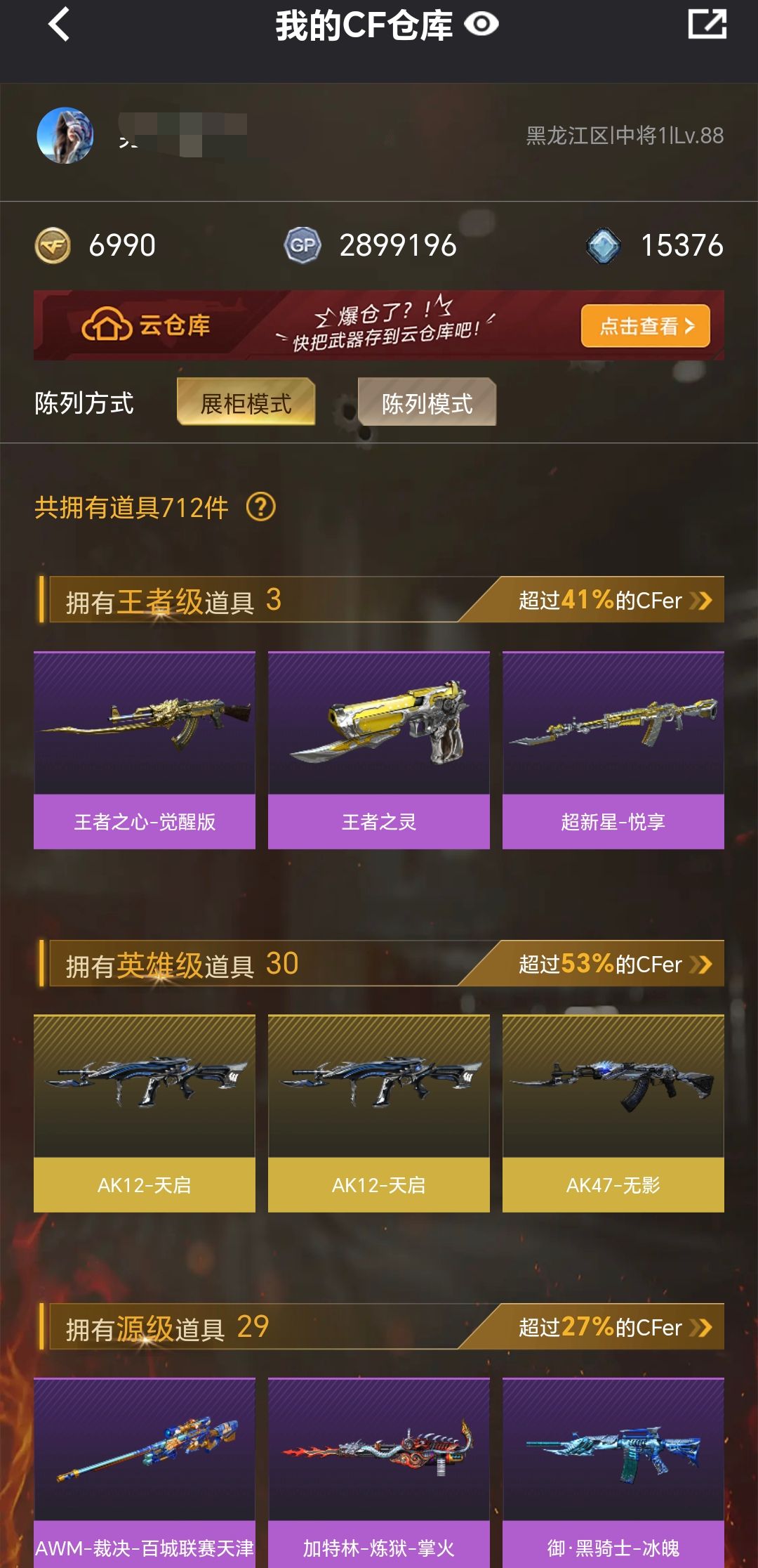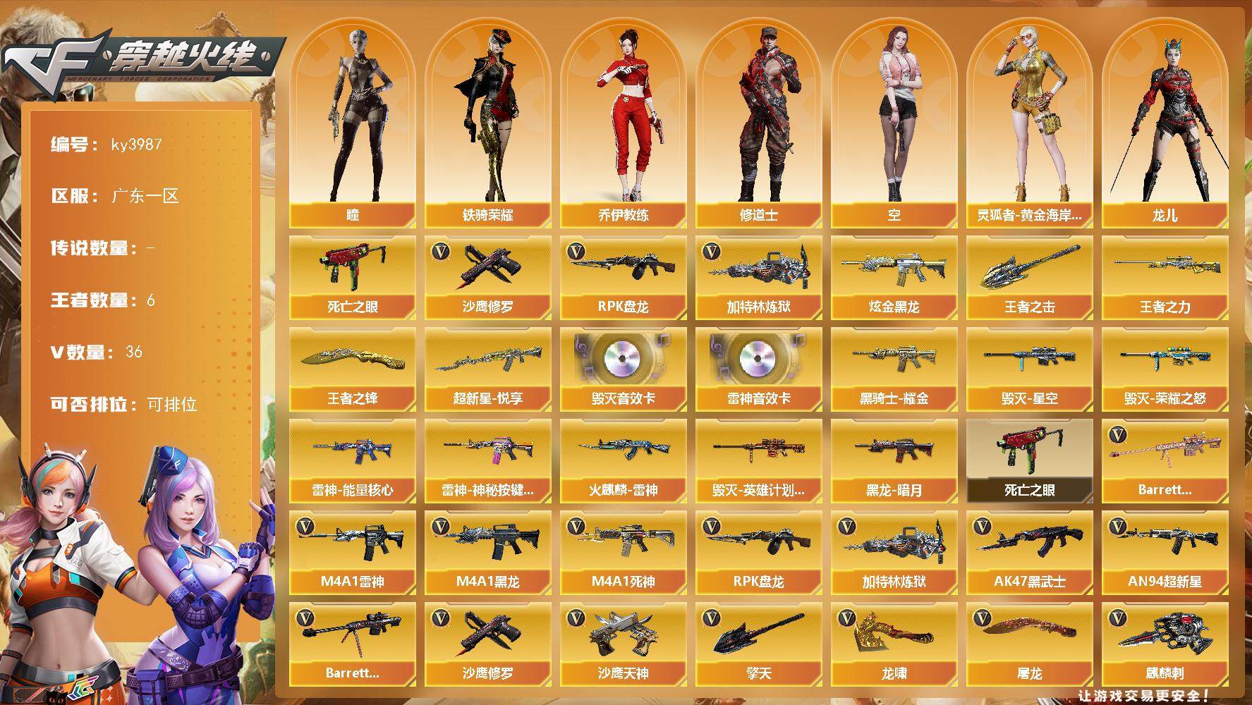 广东一区-36V-6王者-1炫金【热门武器】:死亡之眼,RPK-盘龙*2,加