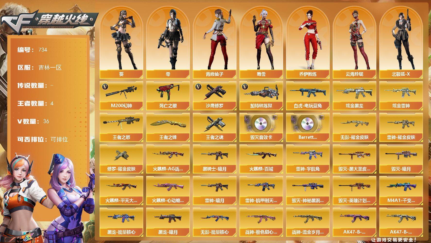 吉林一区-36V-4王者-3炫金【热门武器】:M200-幻神,死亡之眼*2,