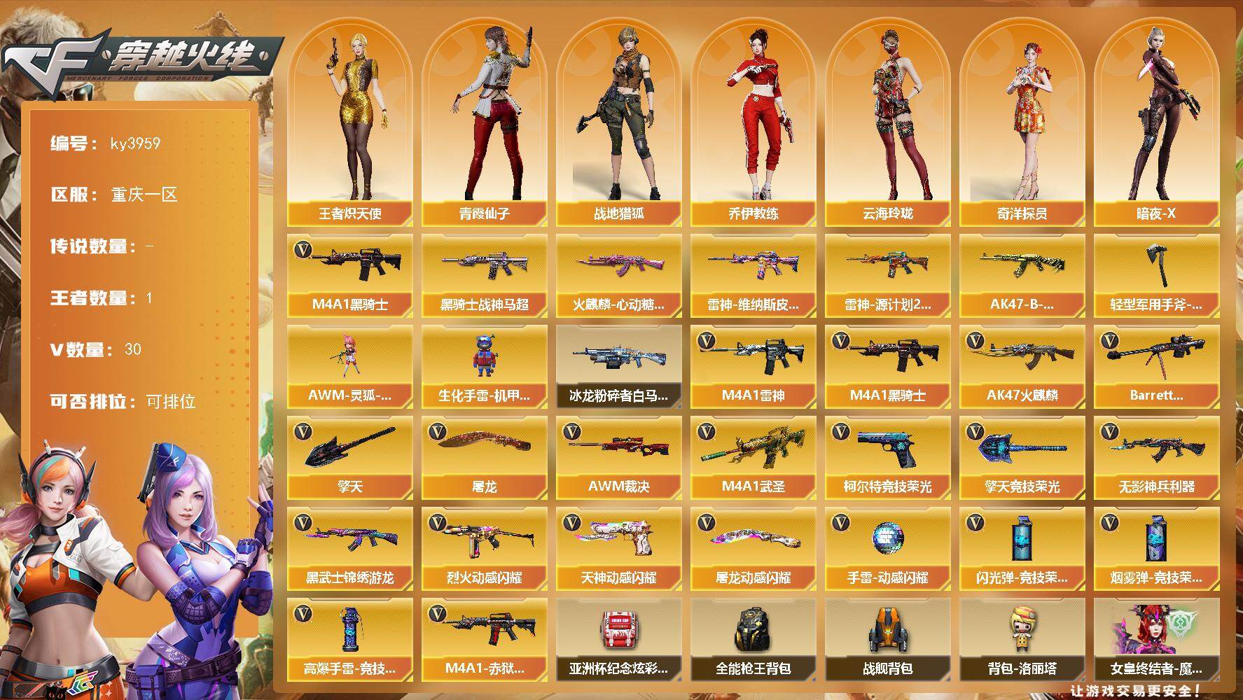重庆一区-30V-1王者-0炫金【热门武器】:M4A1-黑骑士【皮肤】:雷