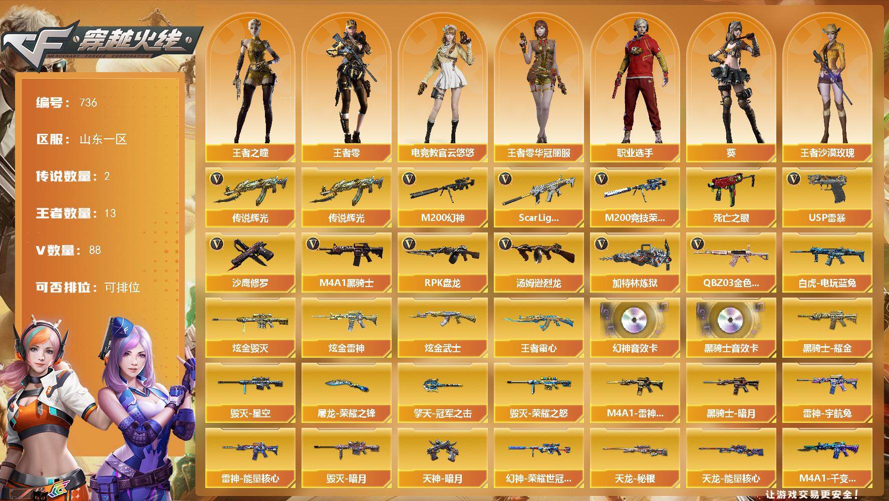 山东一区-88V-13王者-3炫金【传说武器】:传说辉光【传说角色】:传说