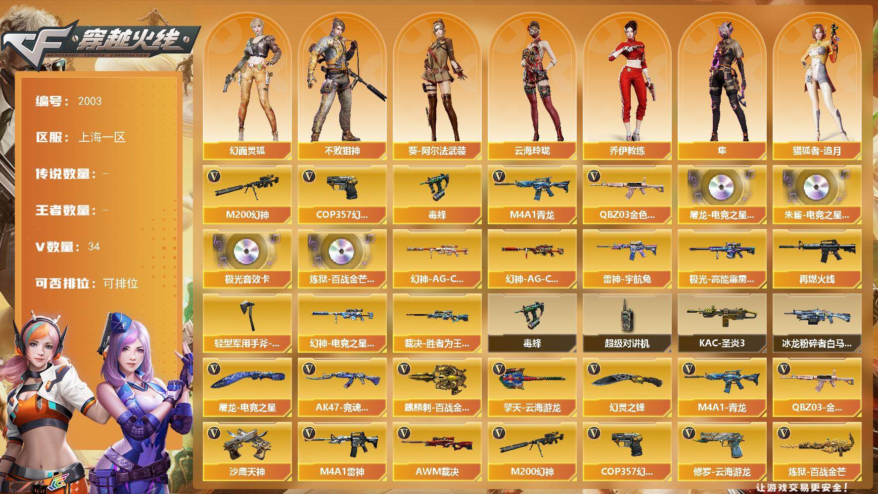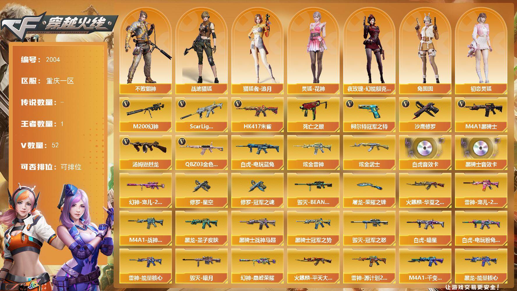 【特价出售·性价比账号】广东一区-111V-6王者武器数-1炫金武器数【传说