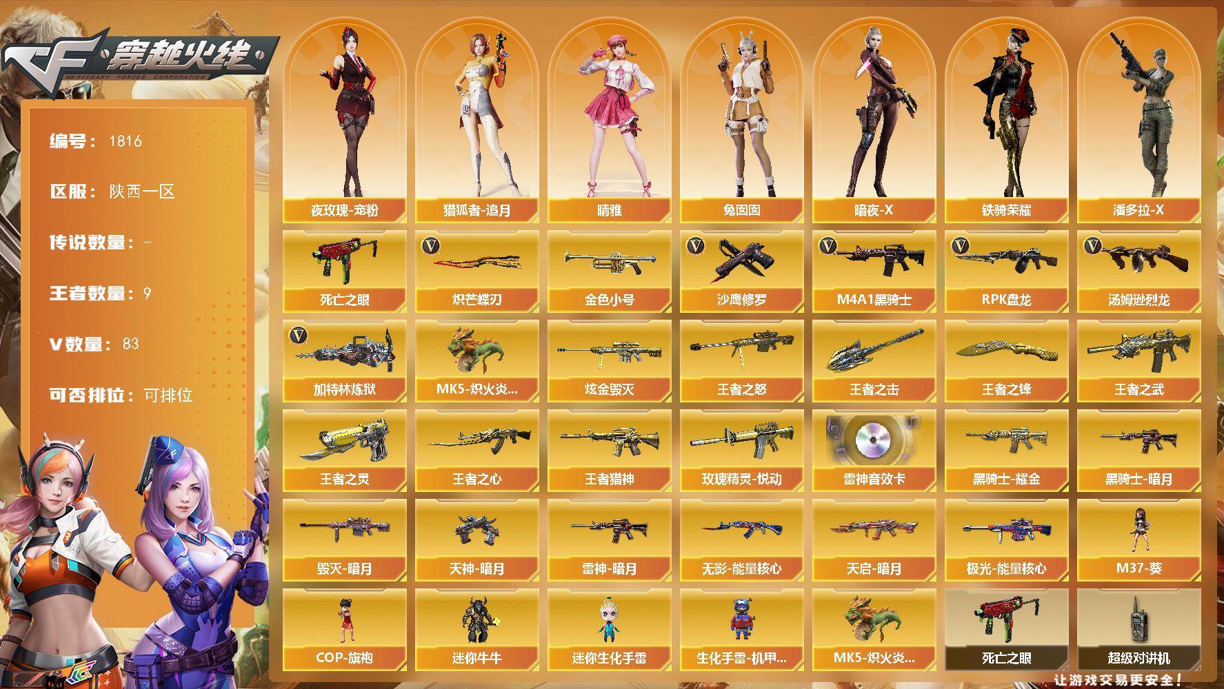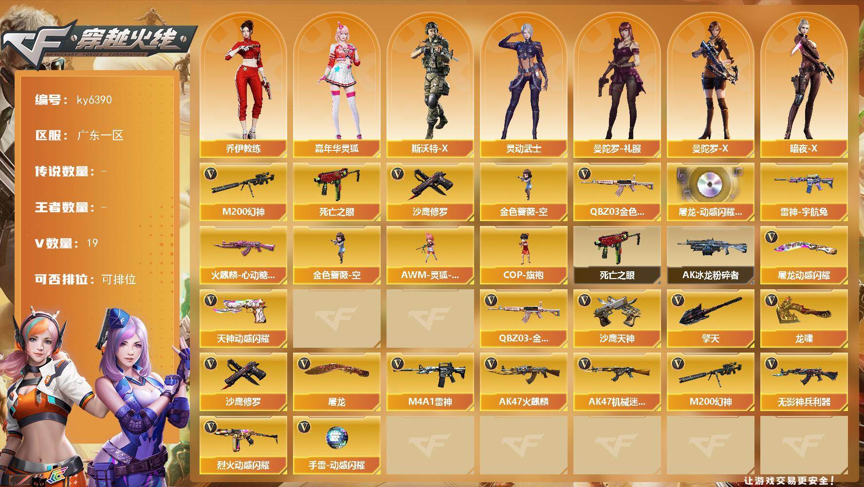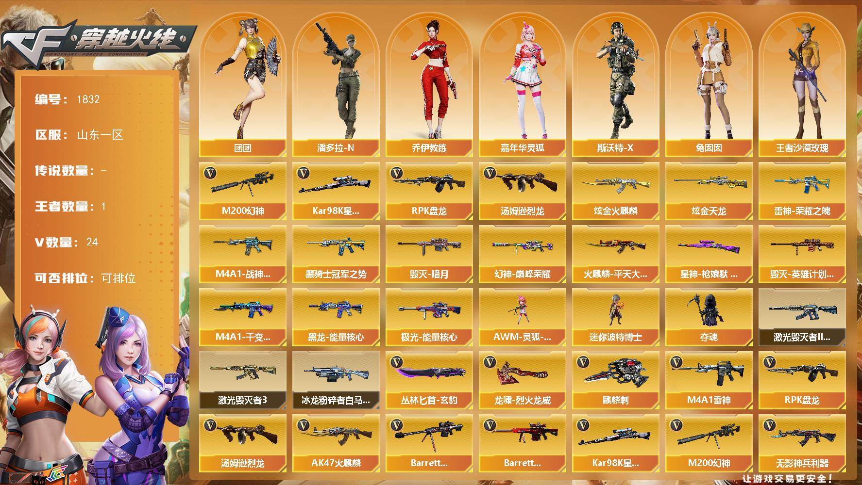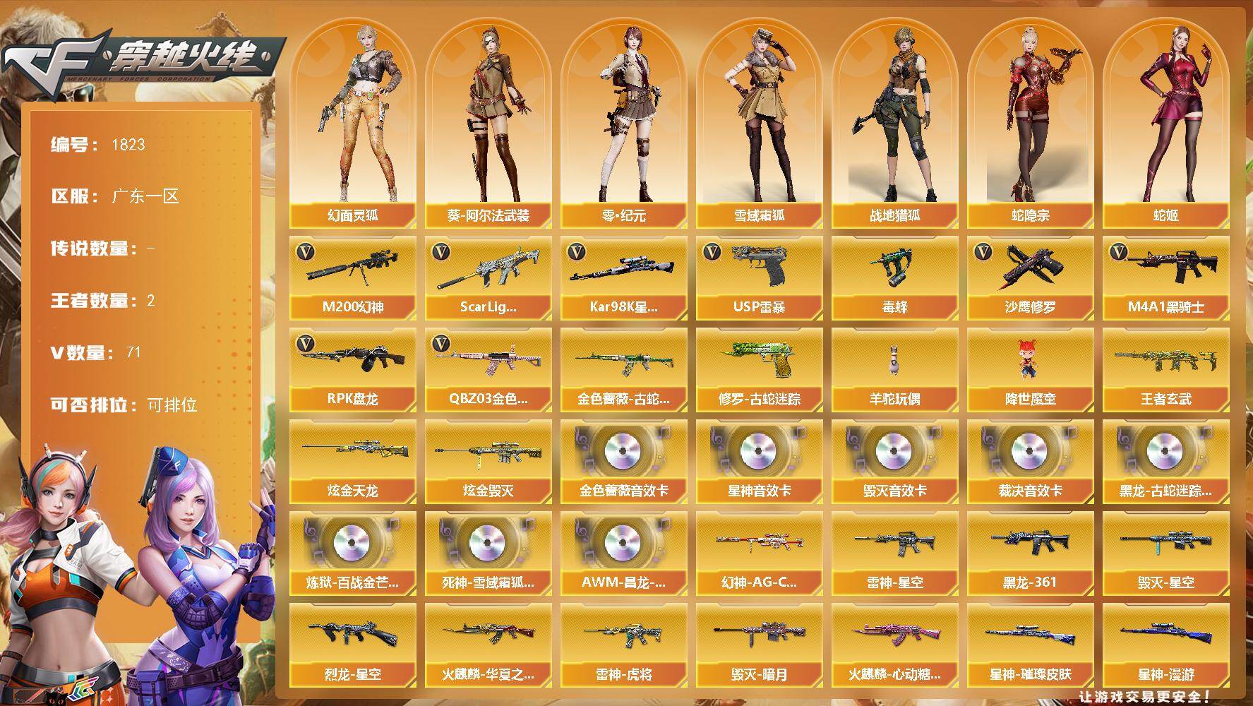 广东一区-80V-4王者武器数-1炫金武器数【传说角色】:神威莲华【热门武