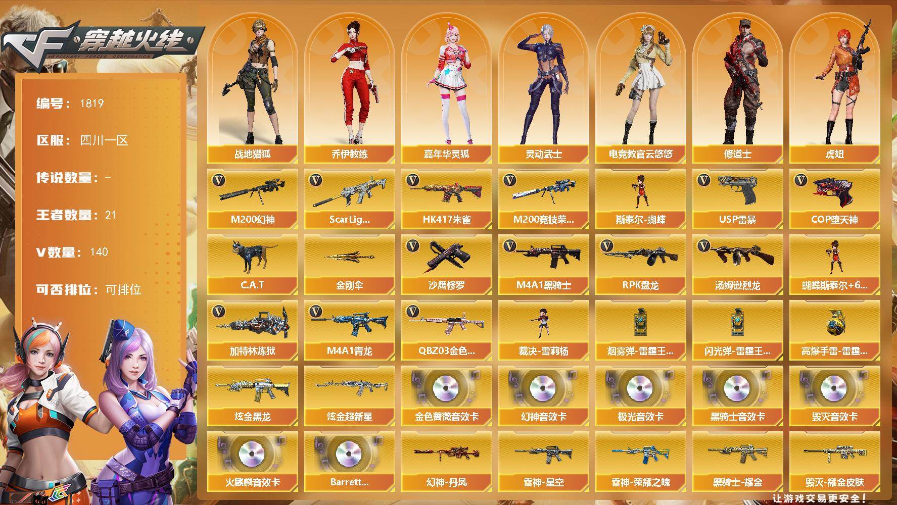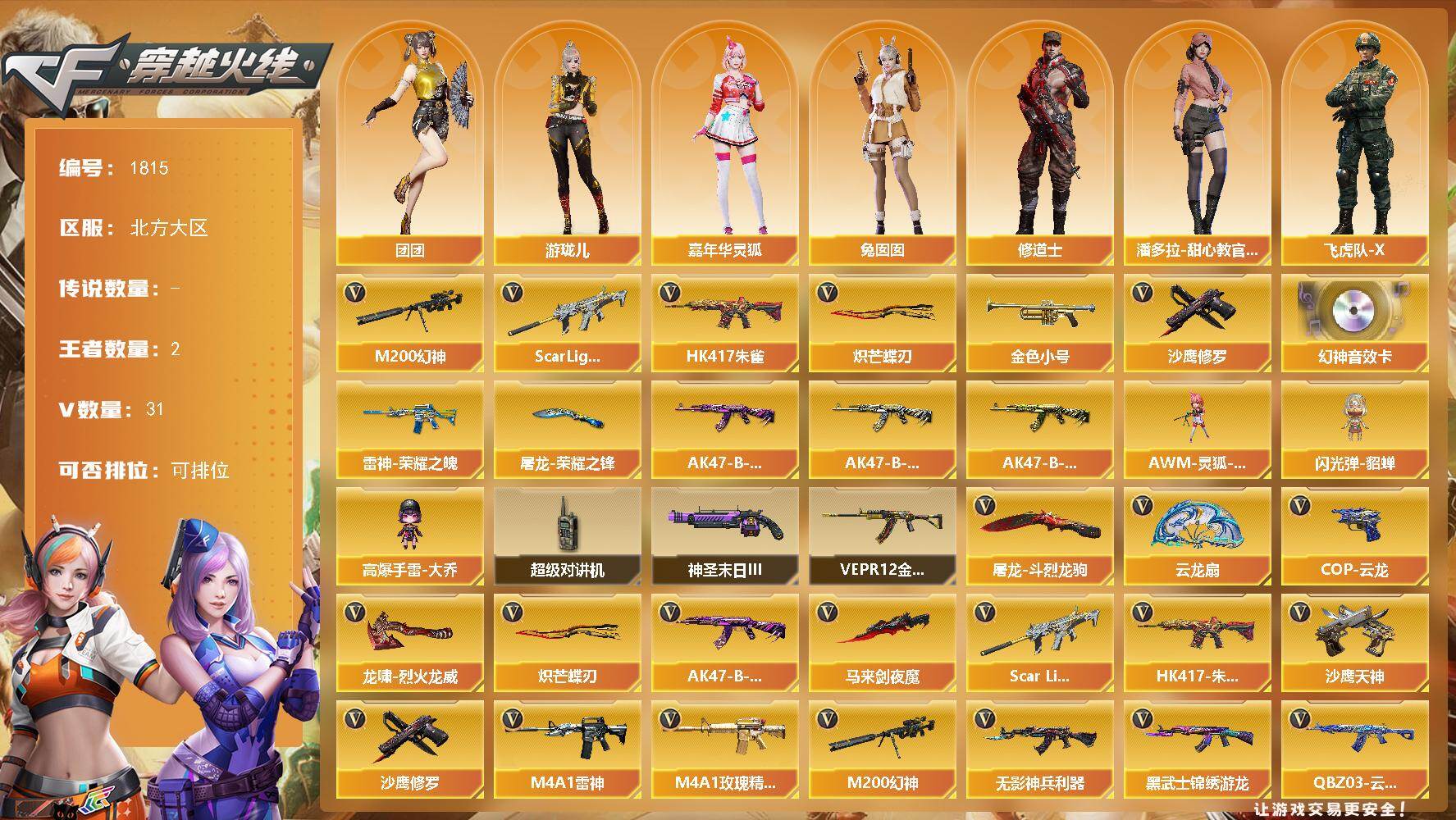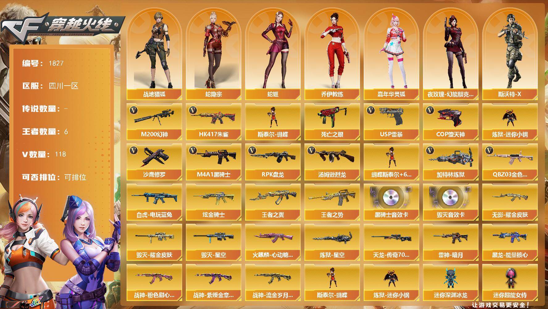 广东一区-80V-4王者武器数-1炫金武器数【传说角色】:神威莲华【热门武