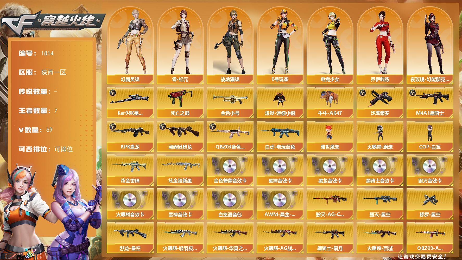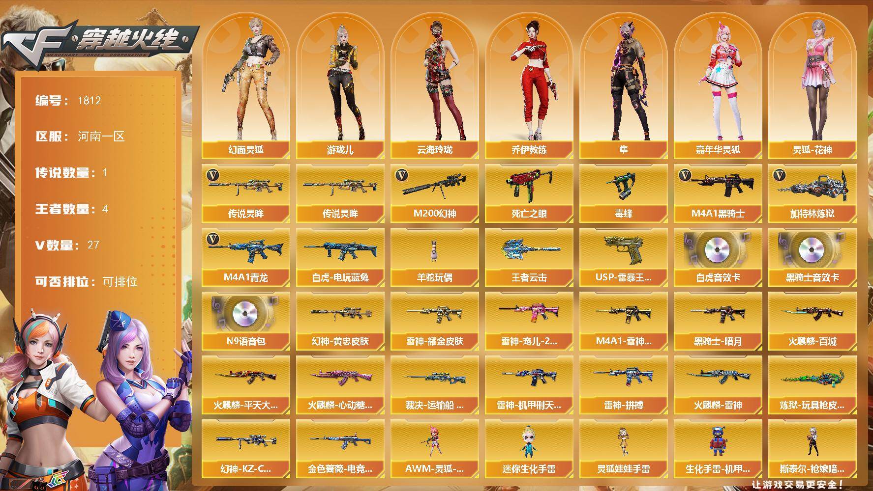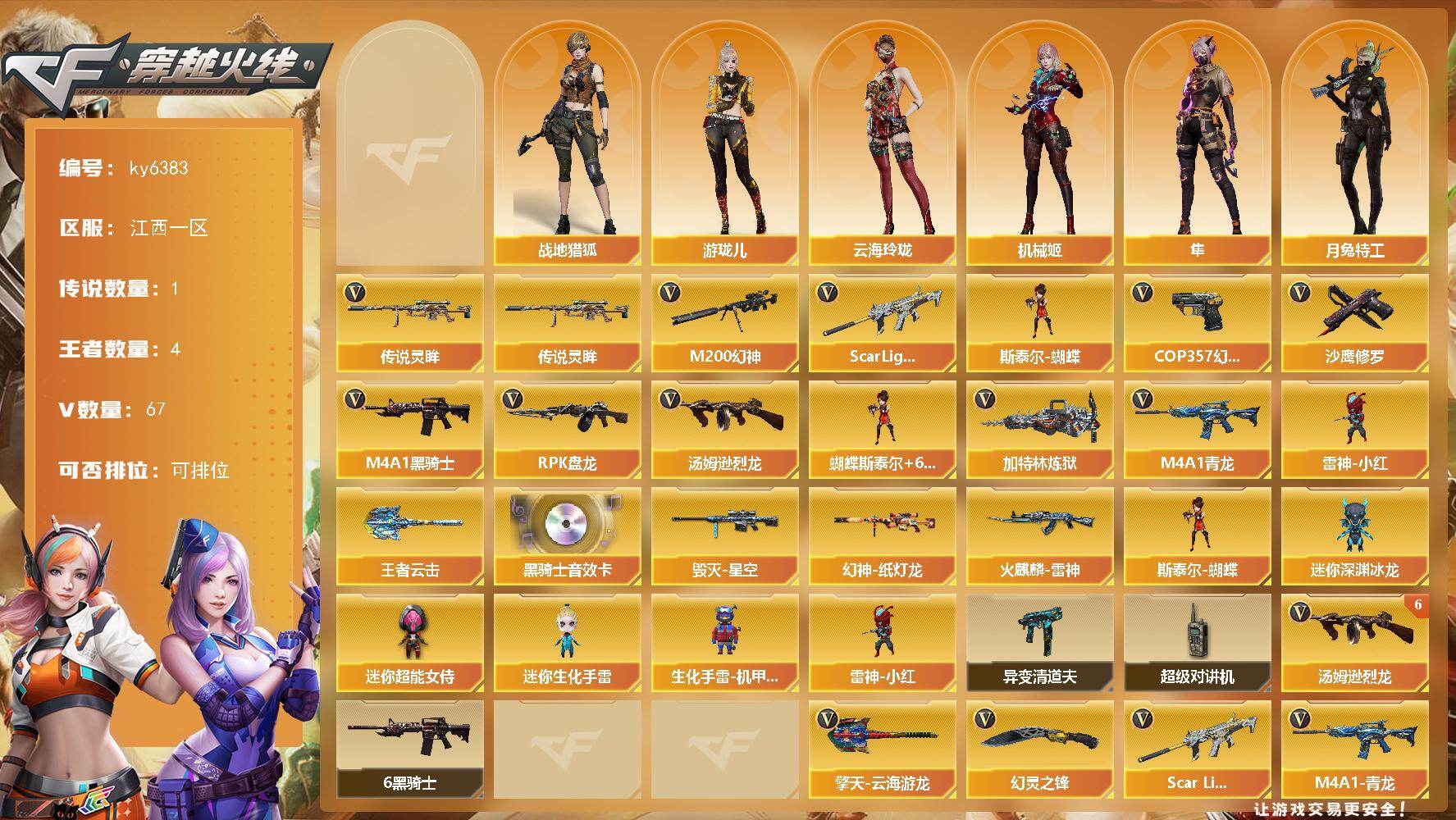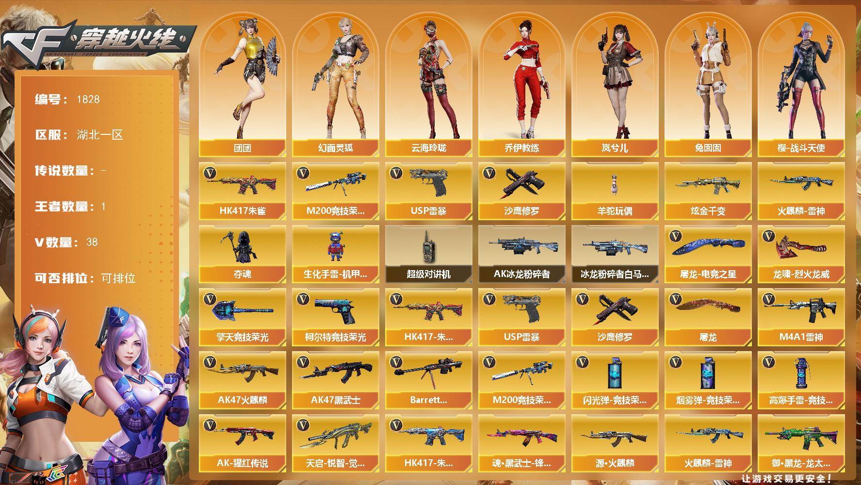 广东一区-80V-4王者武器数-1炫金武器数【传说角色】:神威莲华【热门武