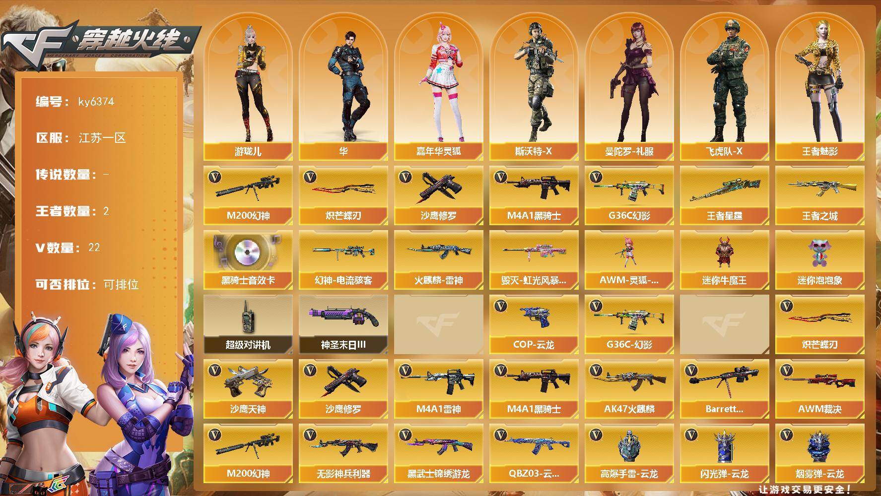 江苏一区-21V-2王者武器数-0炫金武器数【热门武器】:G36C-幻影,M