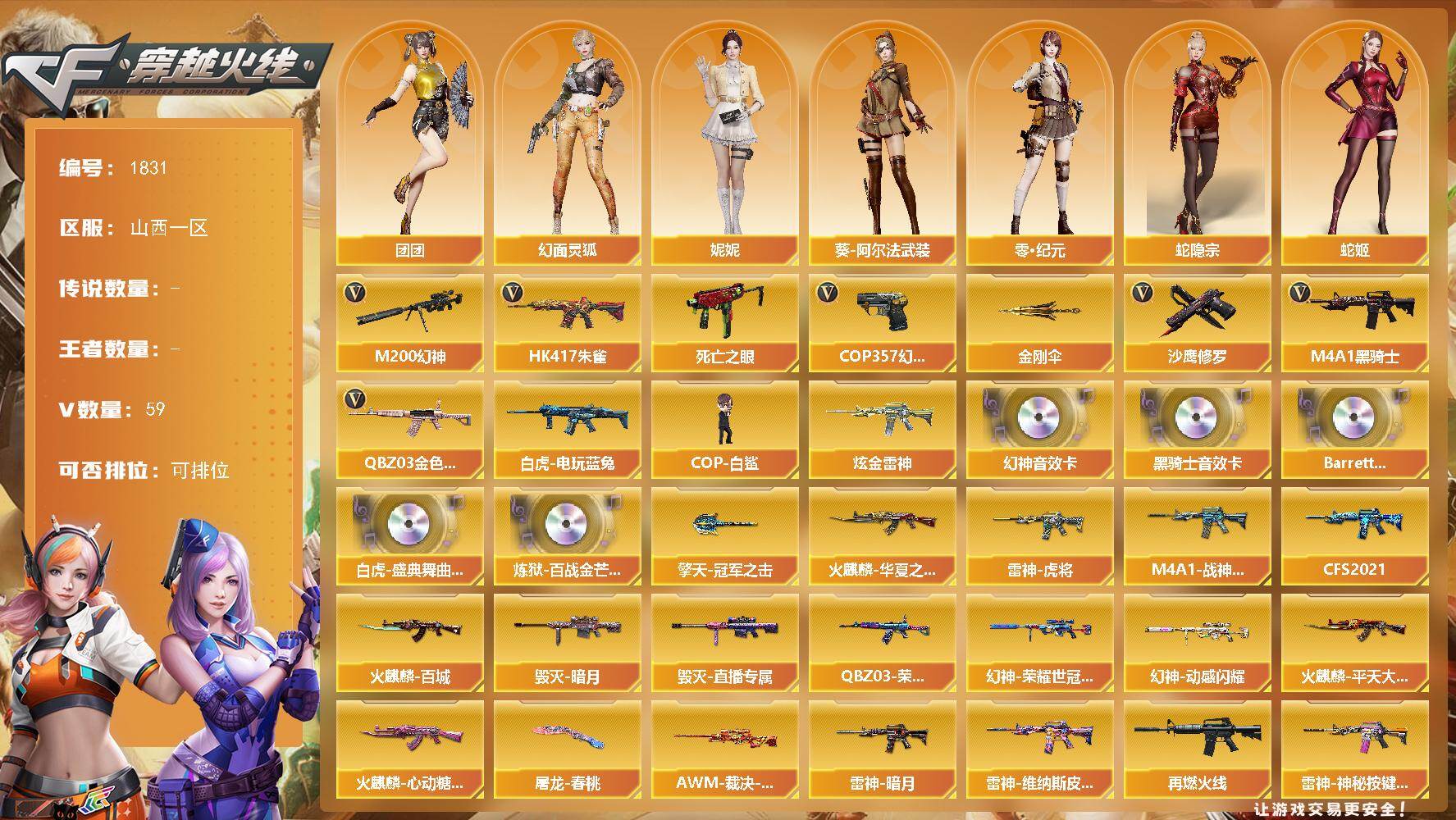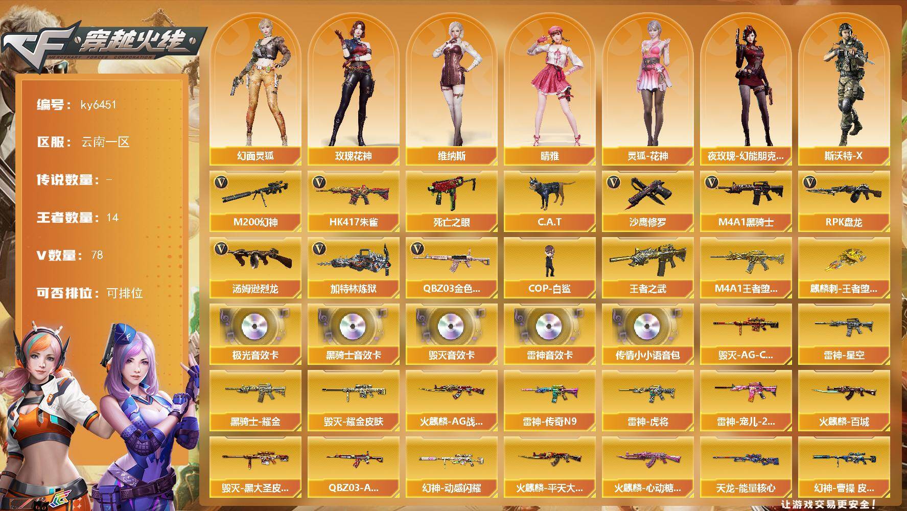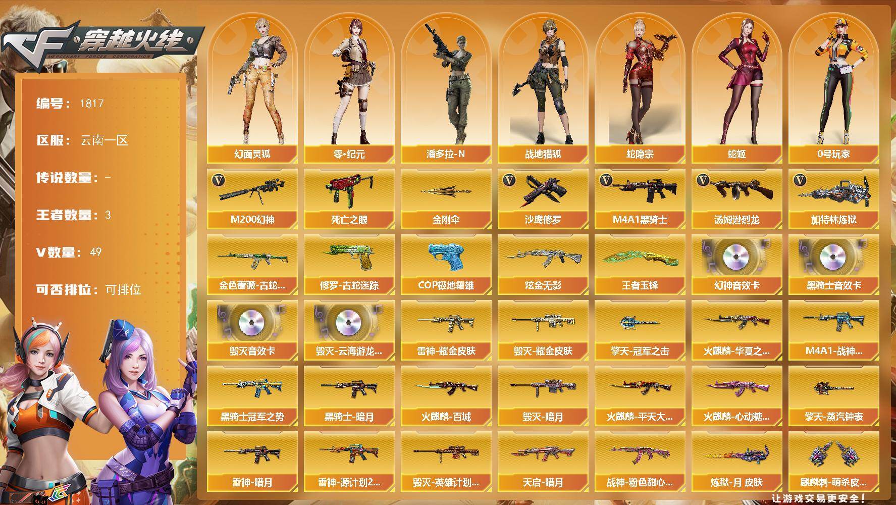 云南一区-86V-14王者武器数-0炫金武器数【热门武器】:QBZ03-金色