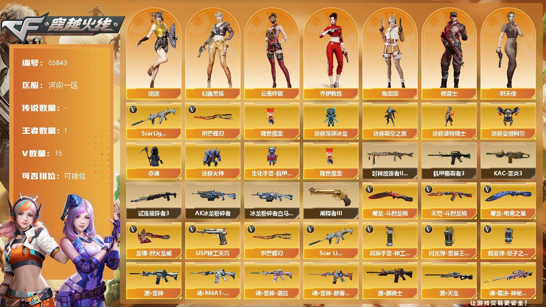 河南一区-16V-1王者武器数-0炫金武器数【热门武器】:Scar Ligh