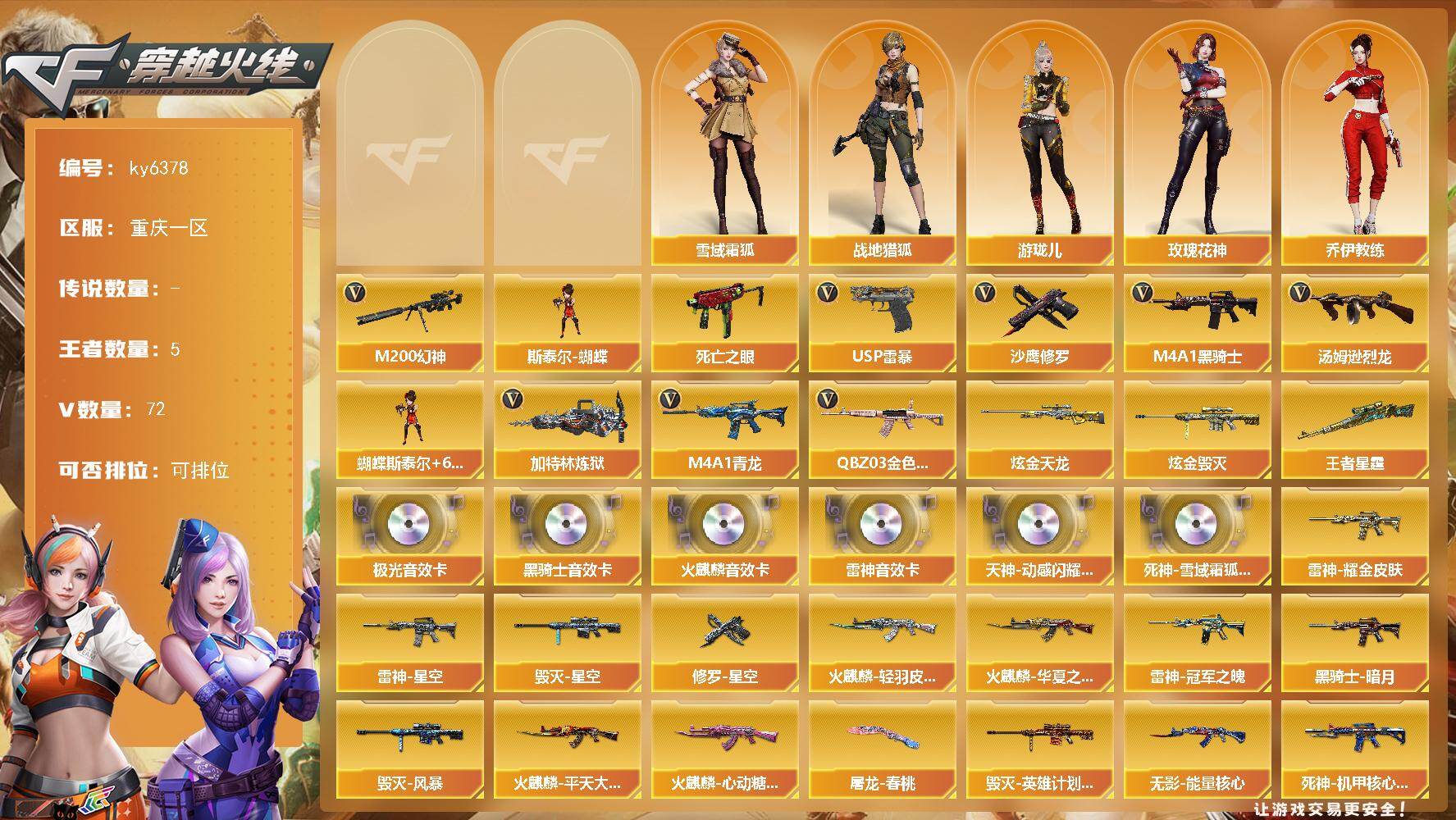 重庆一区-77V-5王者武器数-2炫金武器数【热门武器】:QBZ03-金色蔷