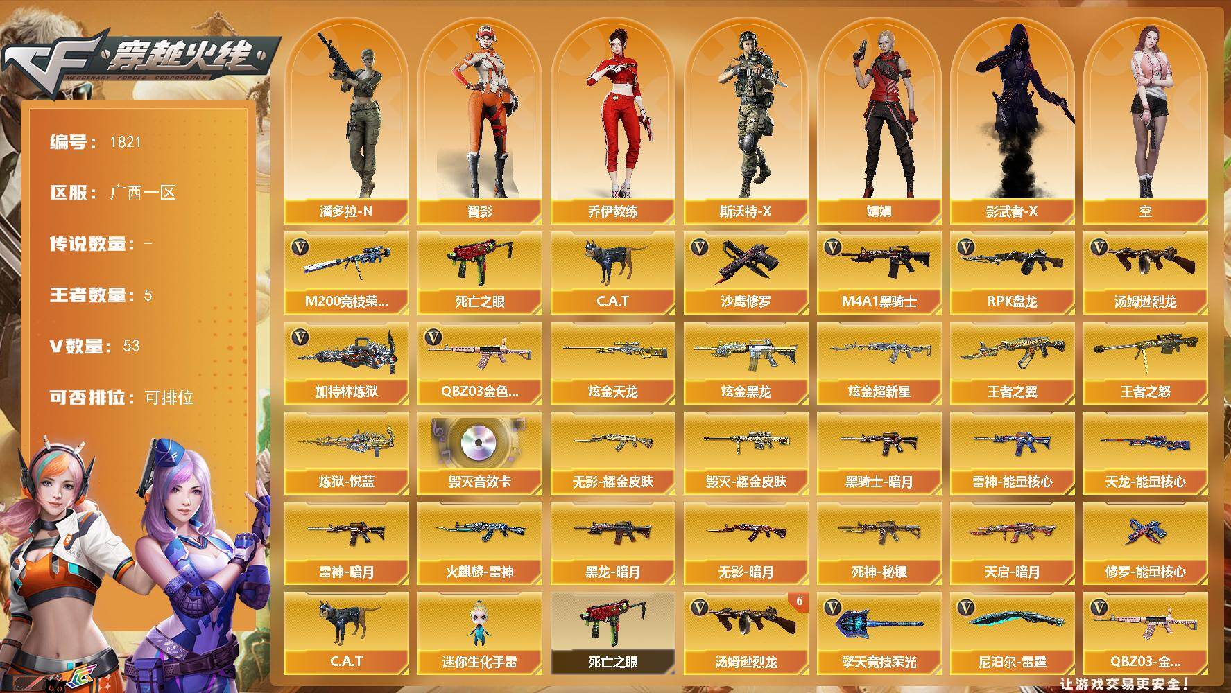 广西一区-61V-4王者武器数-5炫金武器数【热门武器】:QBZ03-金色蔷