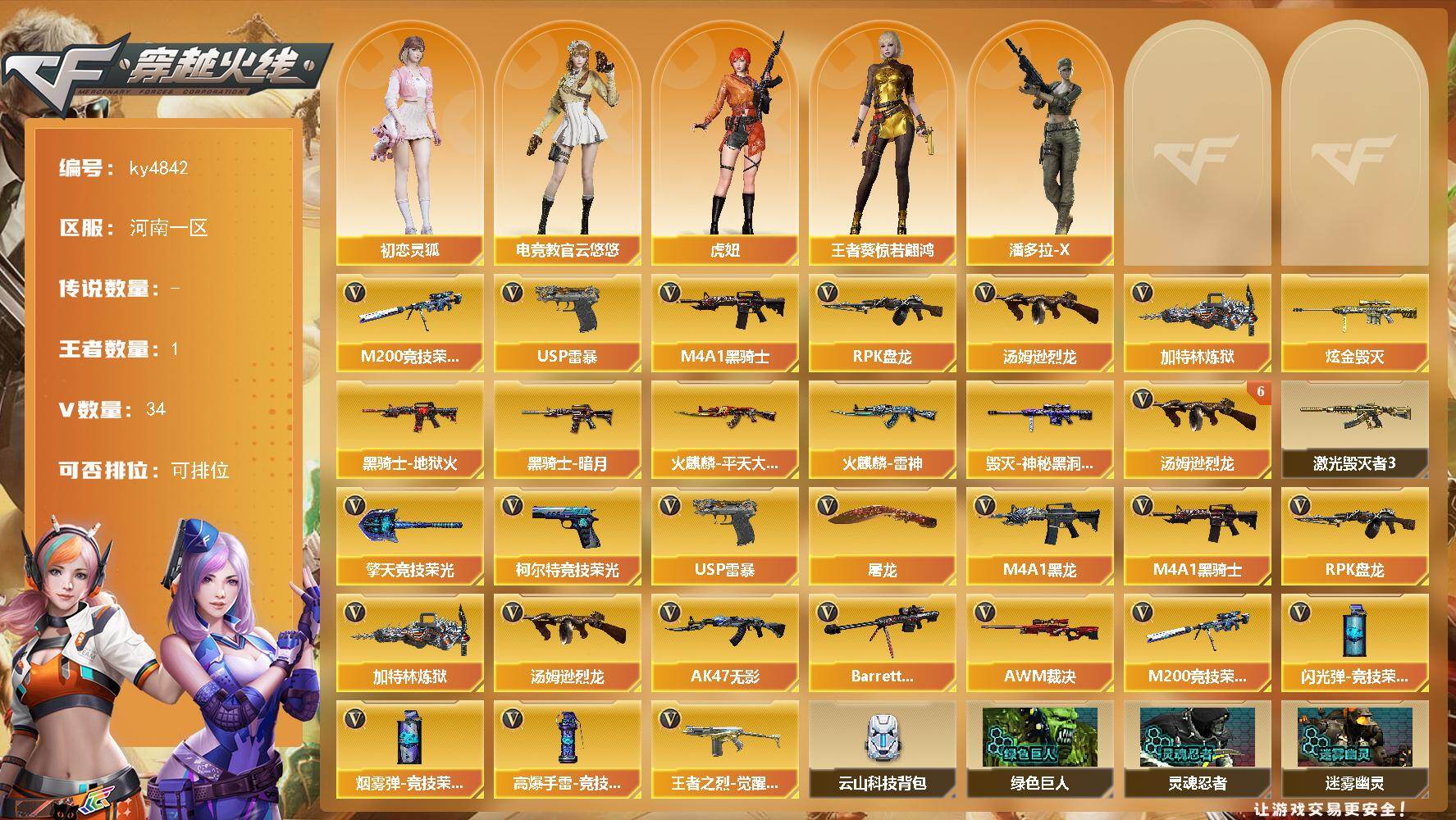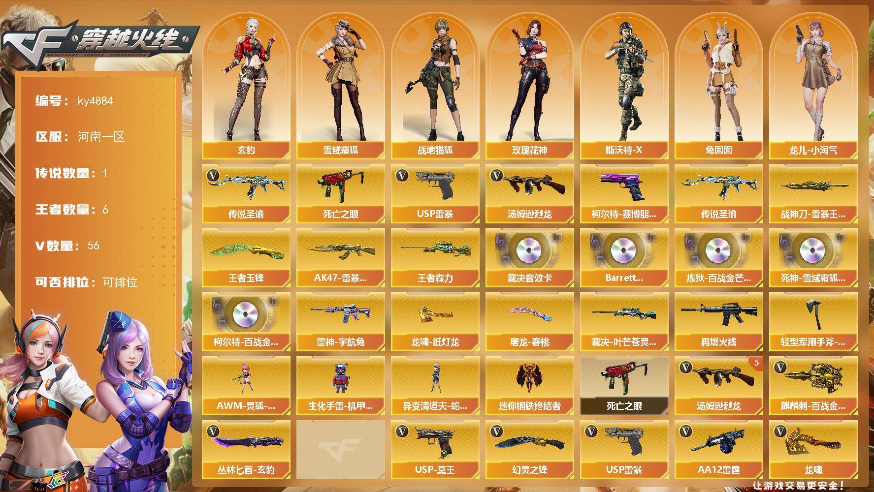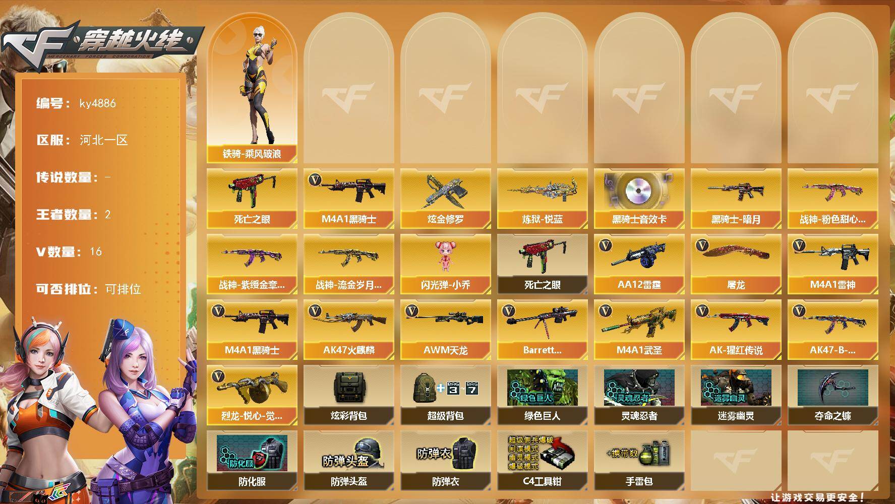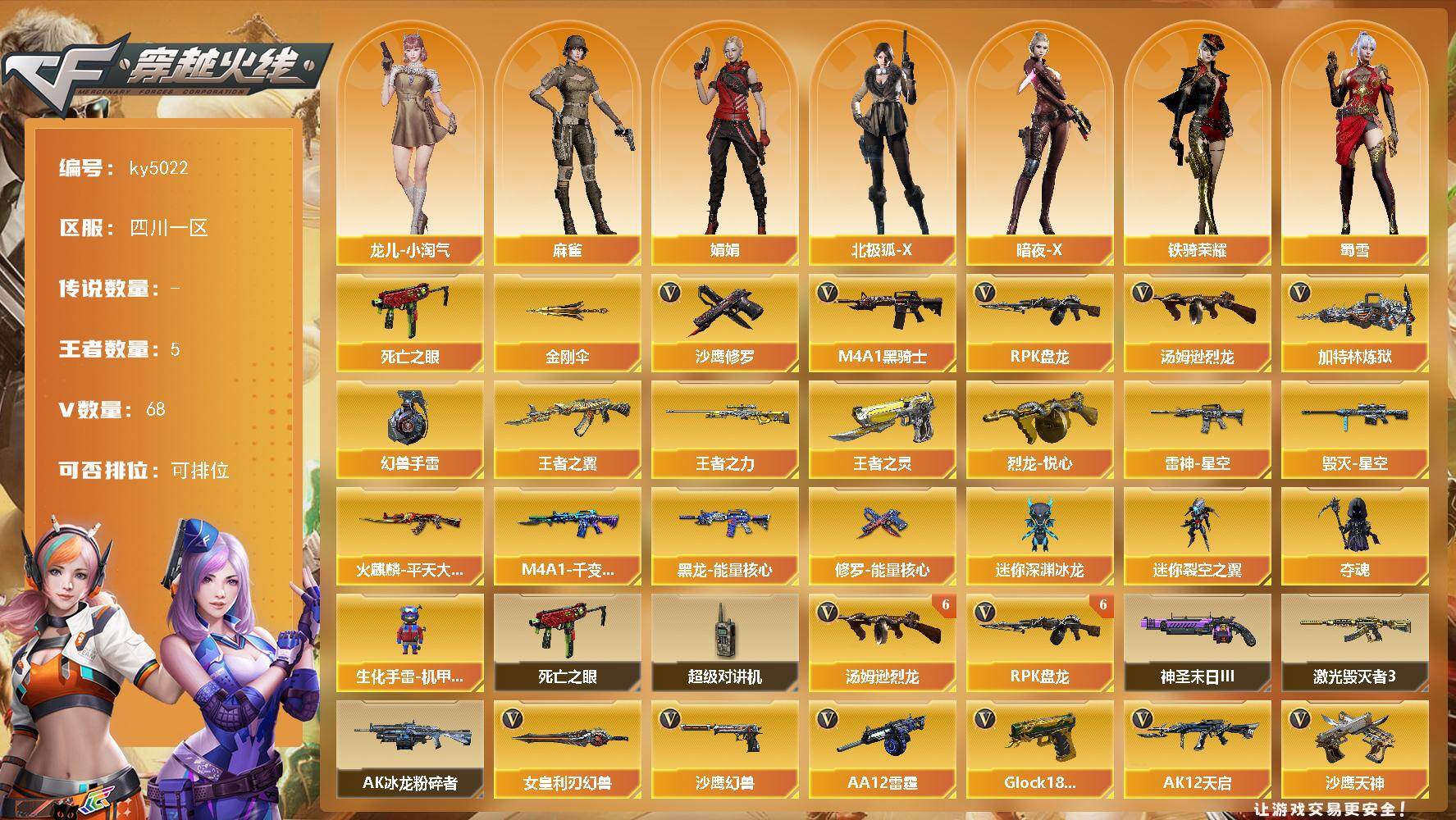 四川一区-68V-5王者-0炫金【热门武器】:死亡之眼,M4A1-黑骑士*