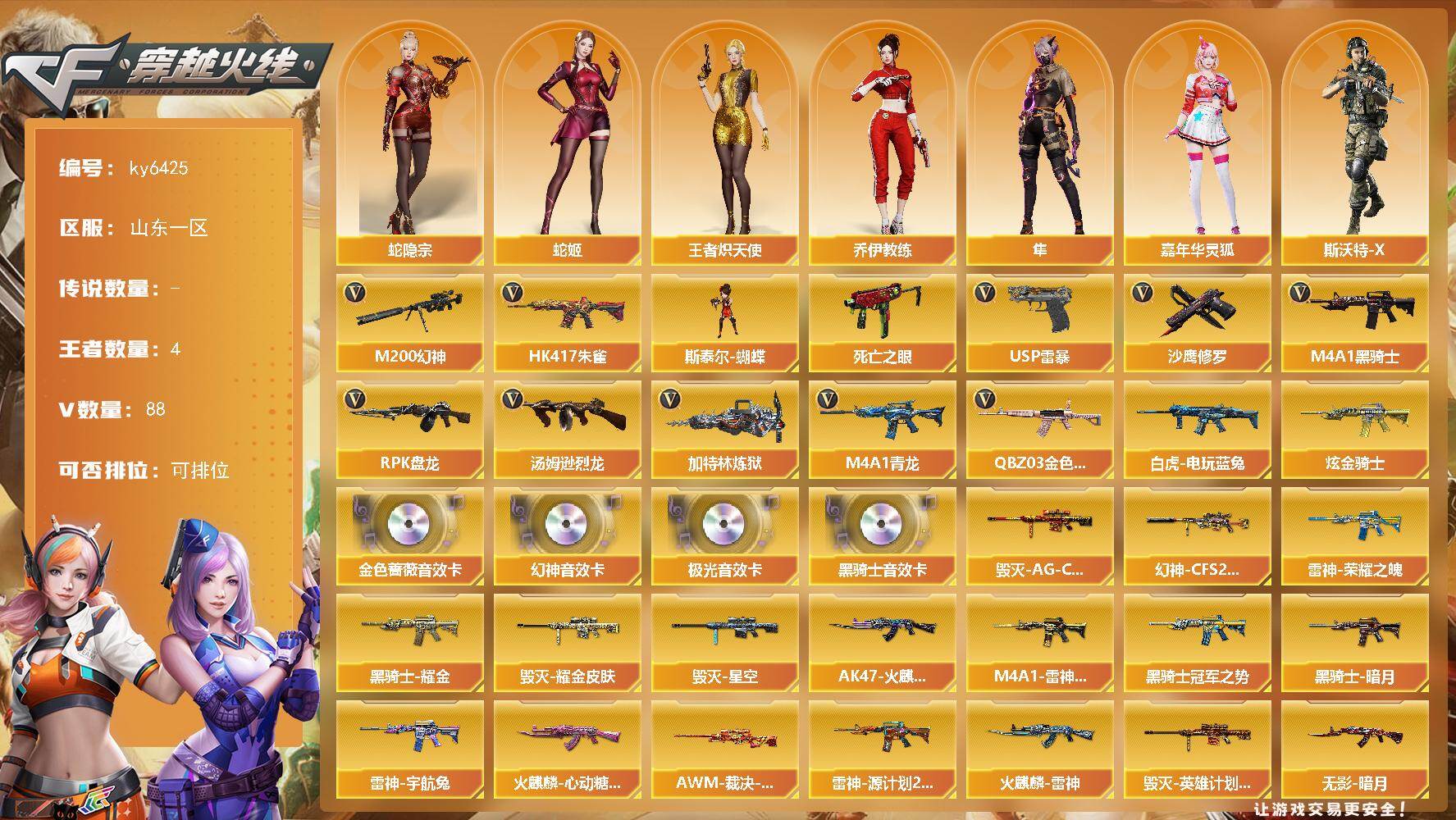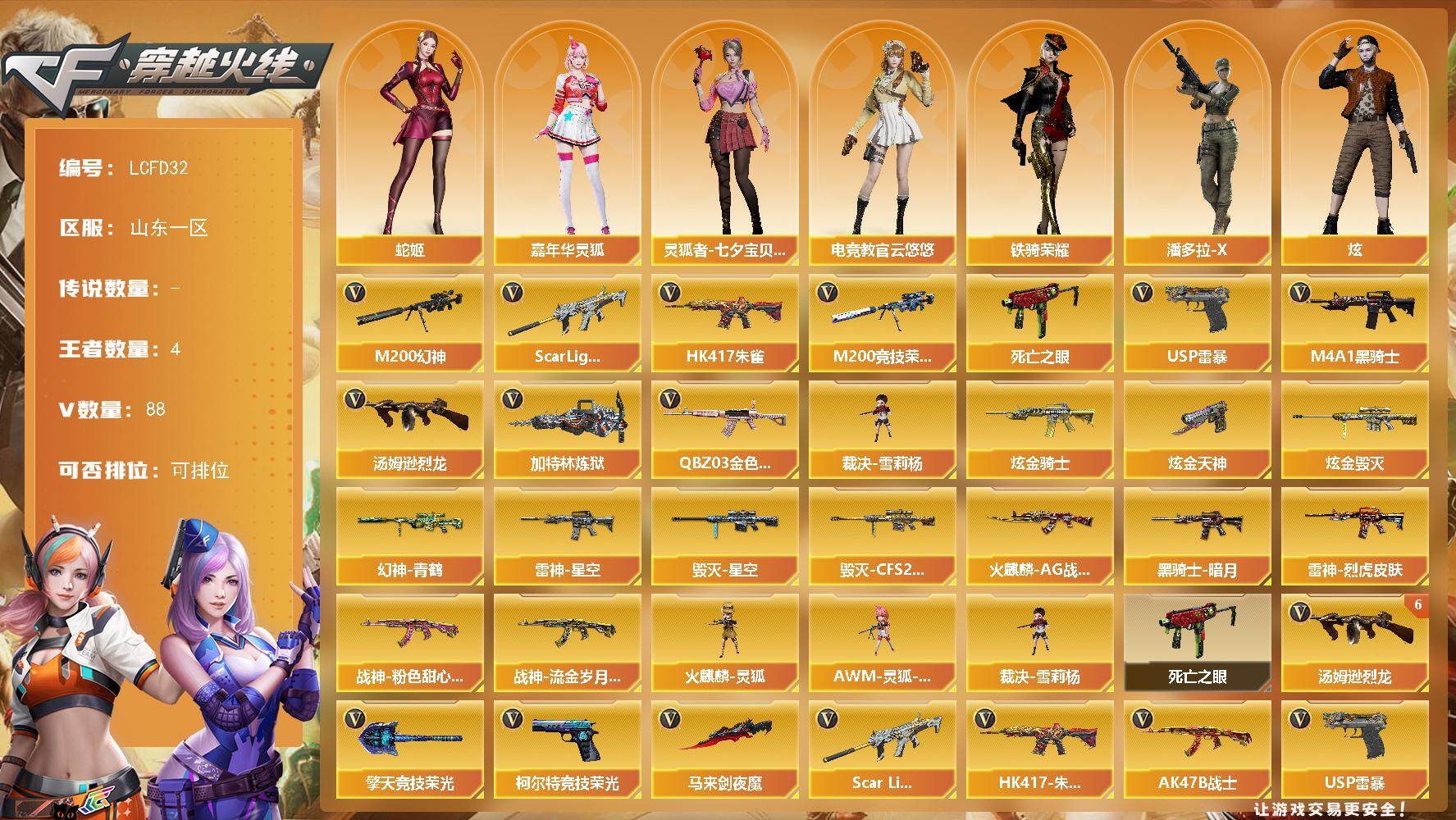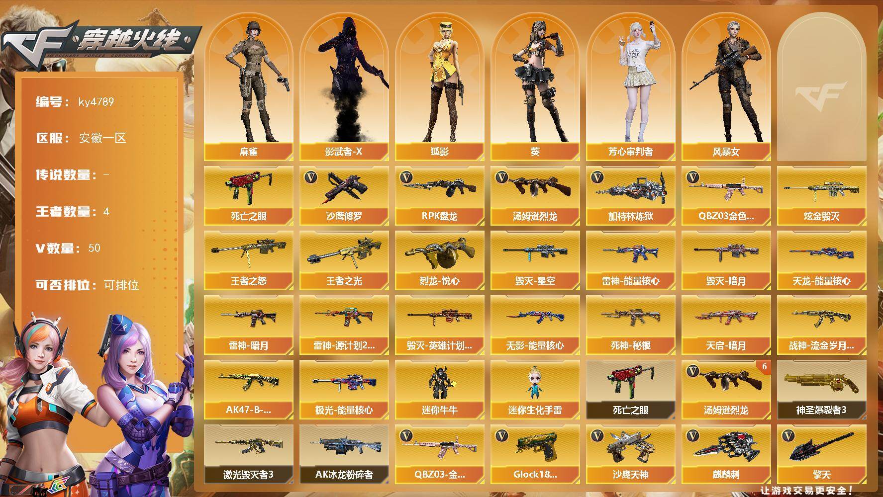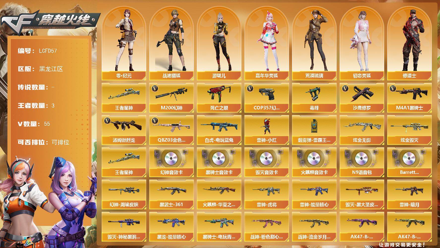 四川一区-68V-5王者-0炫金【热门武器】:死亡之眼,M4A1-黑骑士*